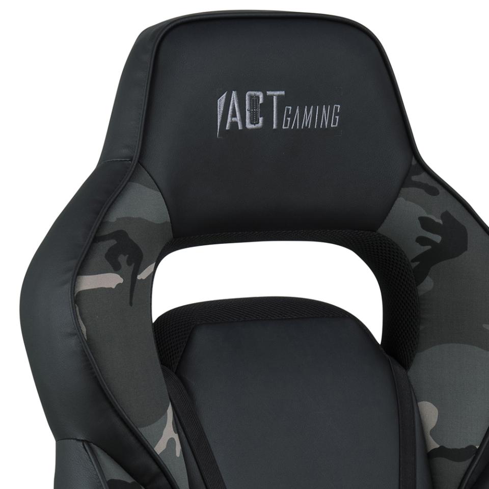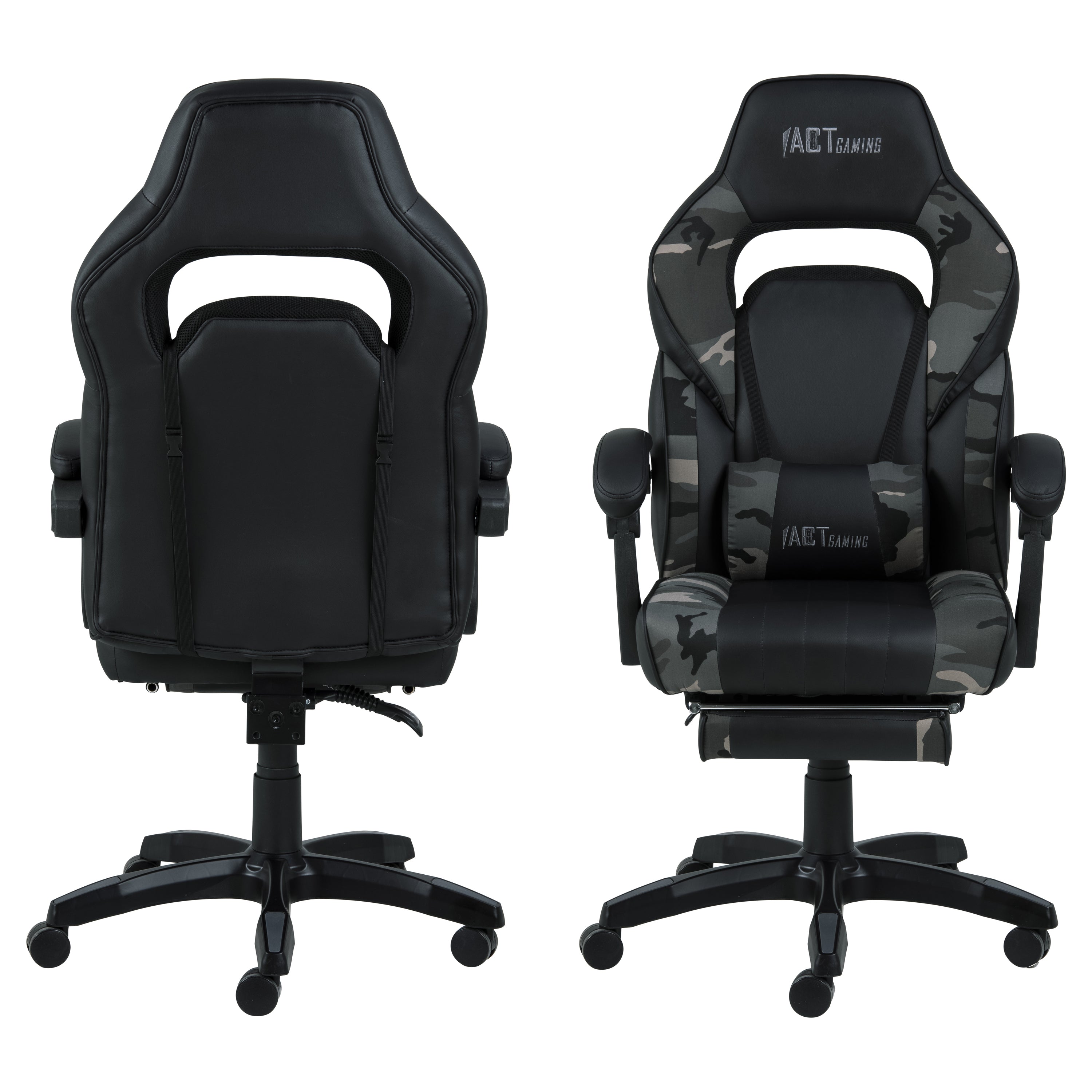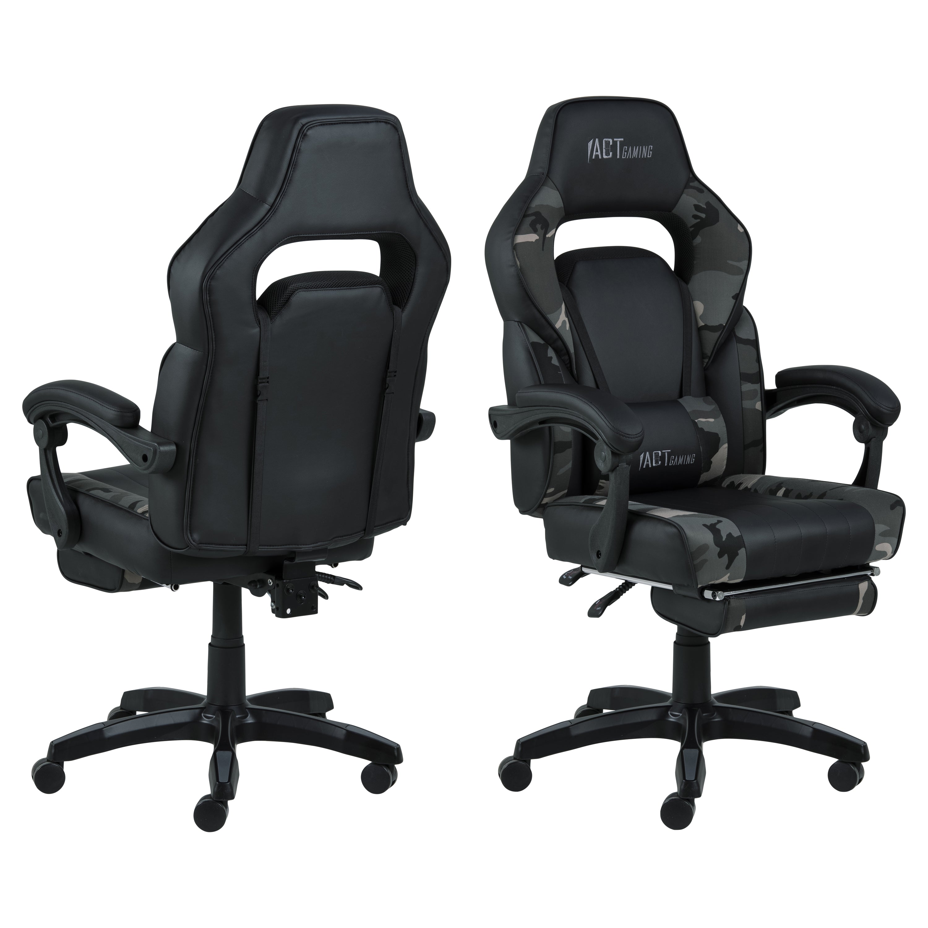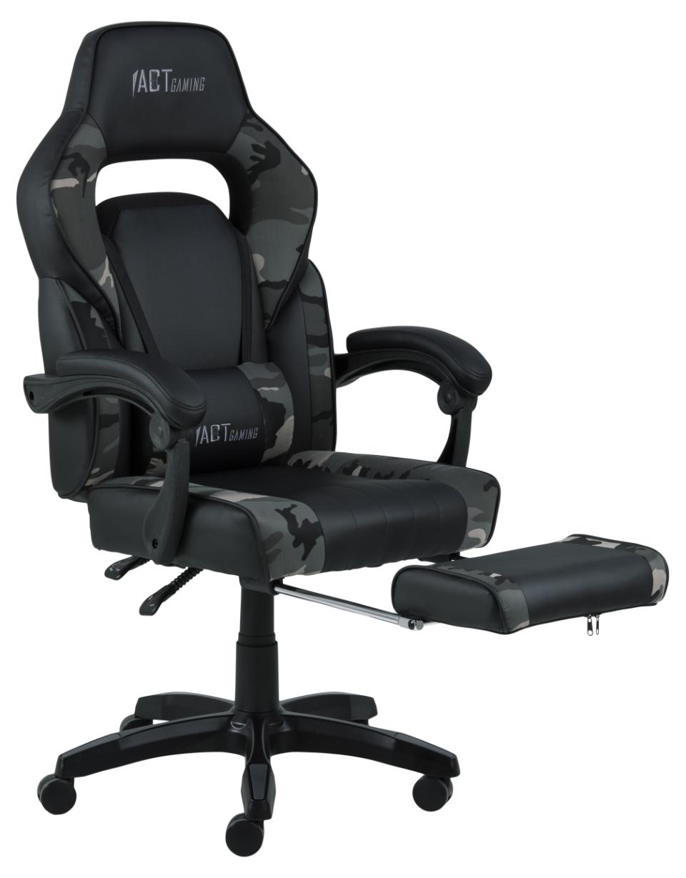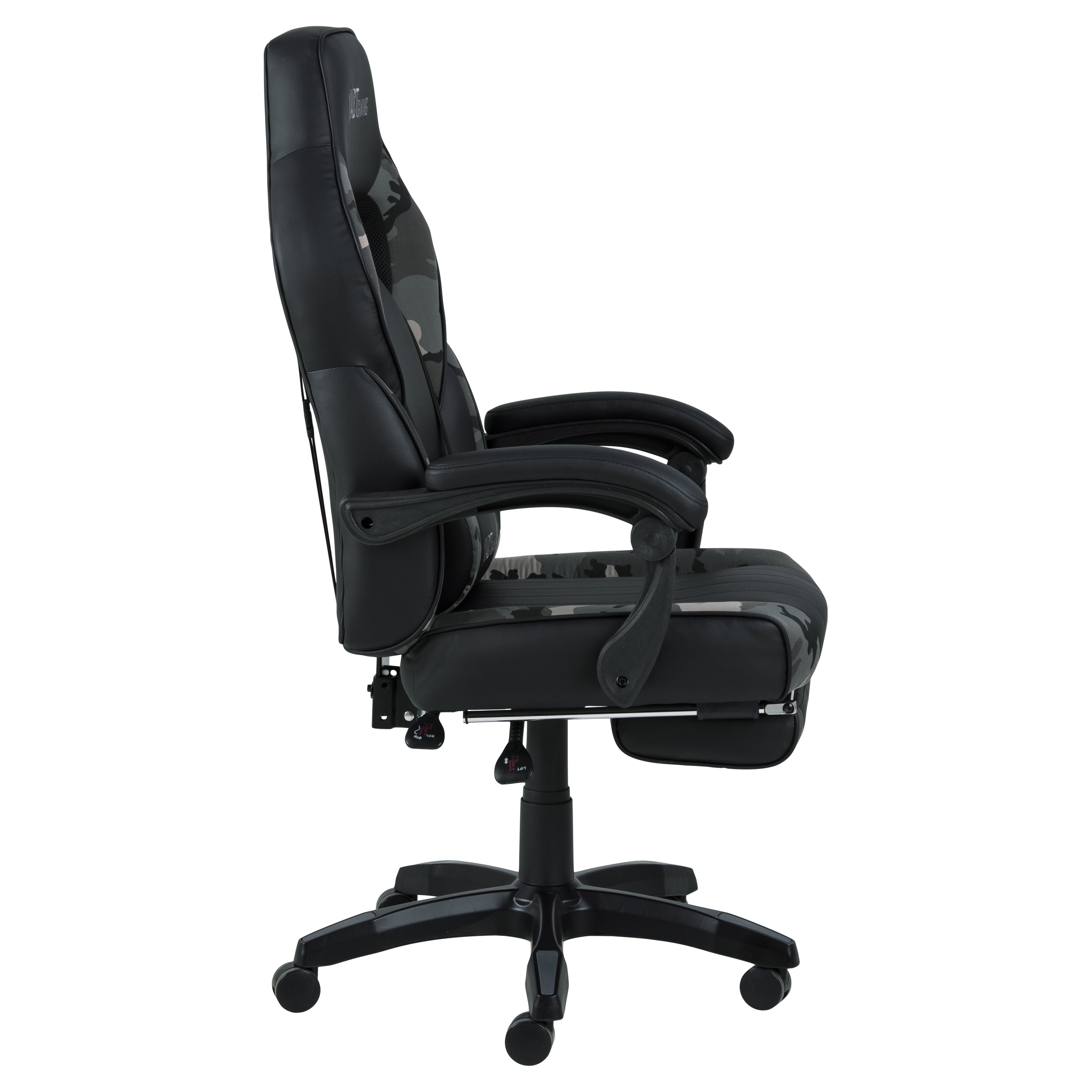 Hioshop Canie gamestoel met voetsteun, camouflagegrijs en zwart.