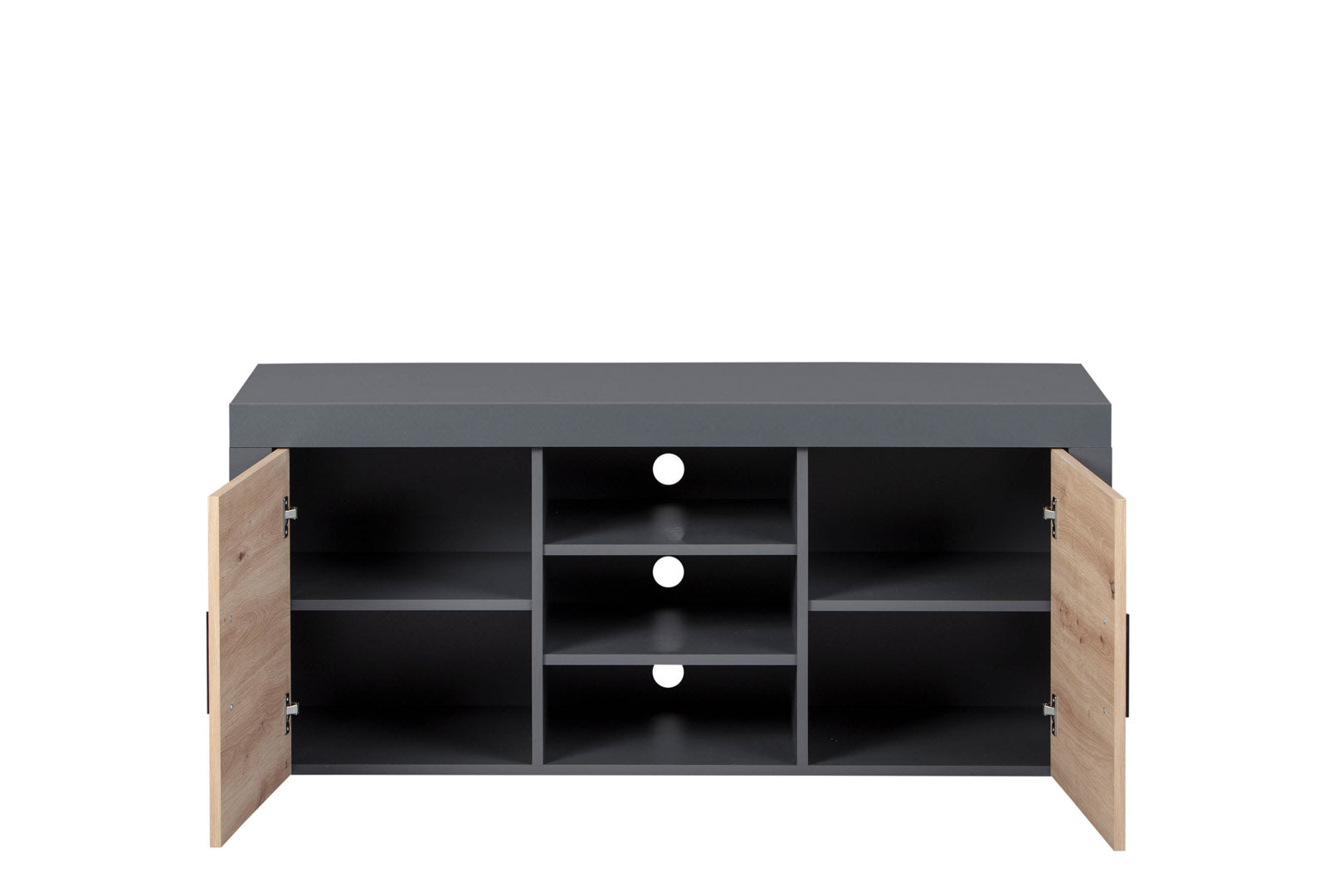 - 1 x CorbetoTV TV-meubel 2 deuren, 3 open vakkenantraciet, eiken Artisanale decor.