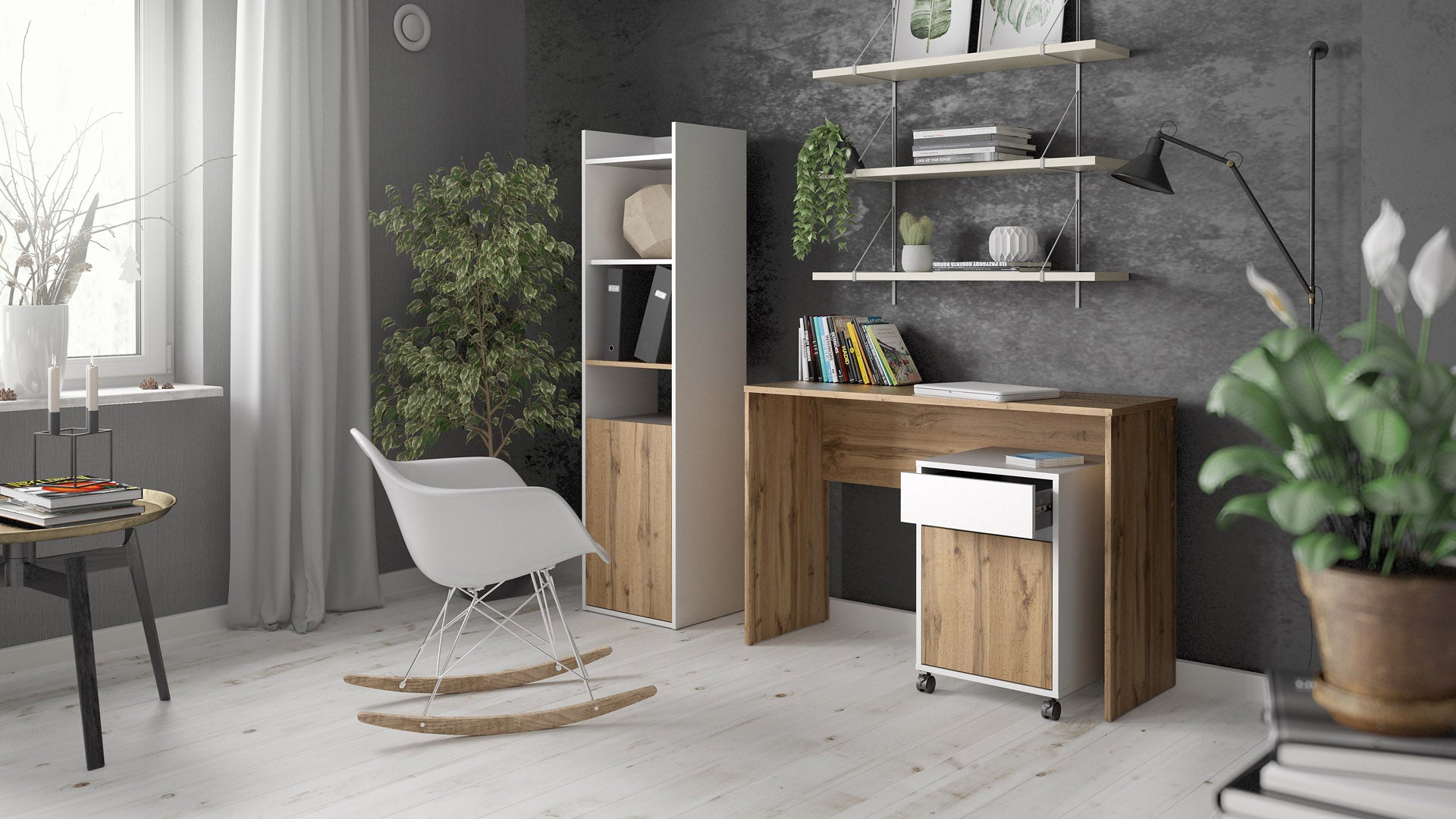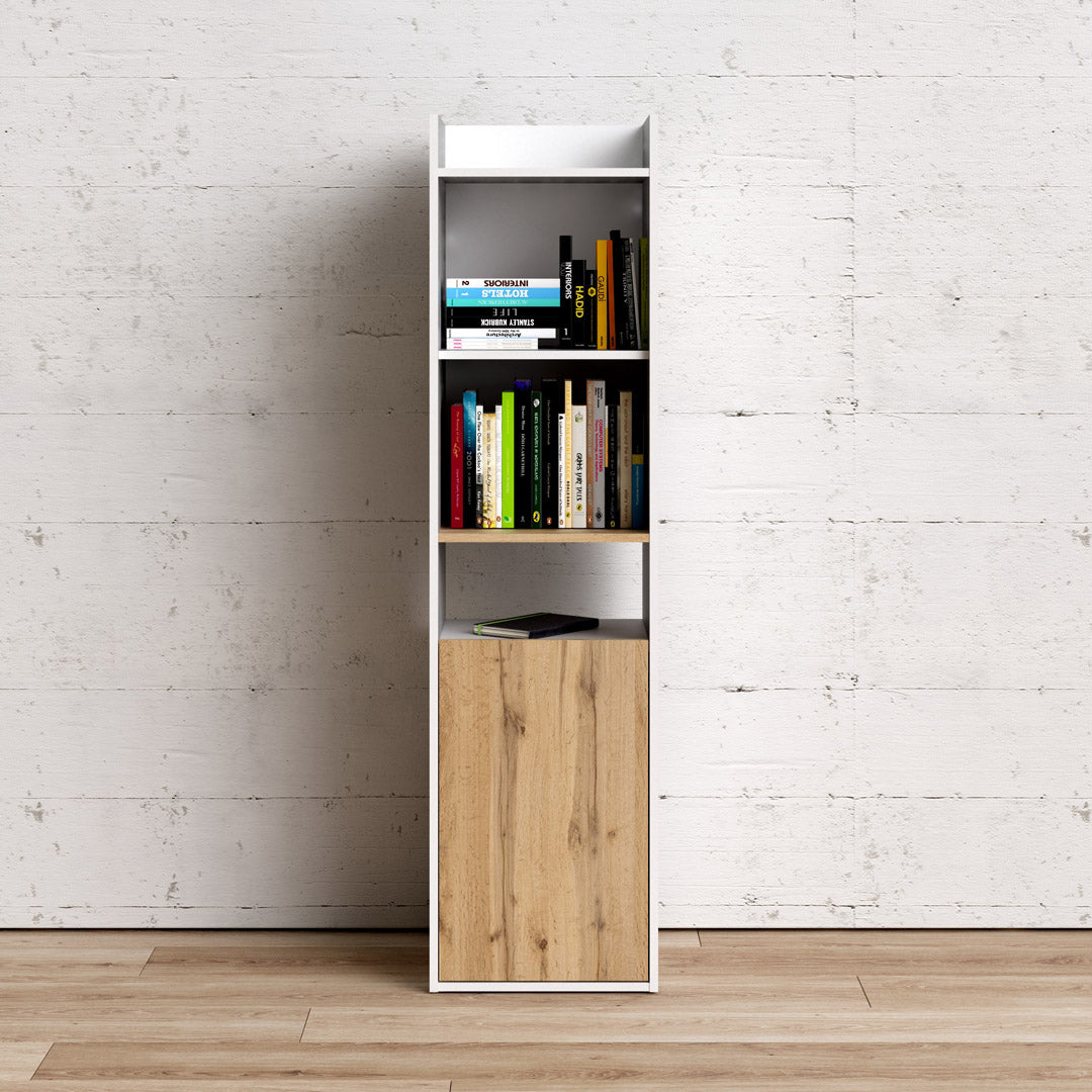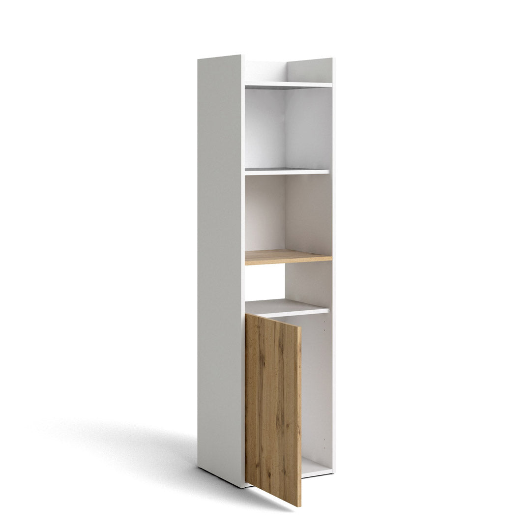 Hioshop Fula wandkast 2 kamers en 1 deur wit en eiken decor.