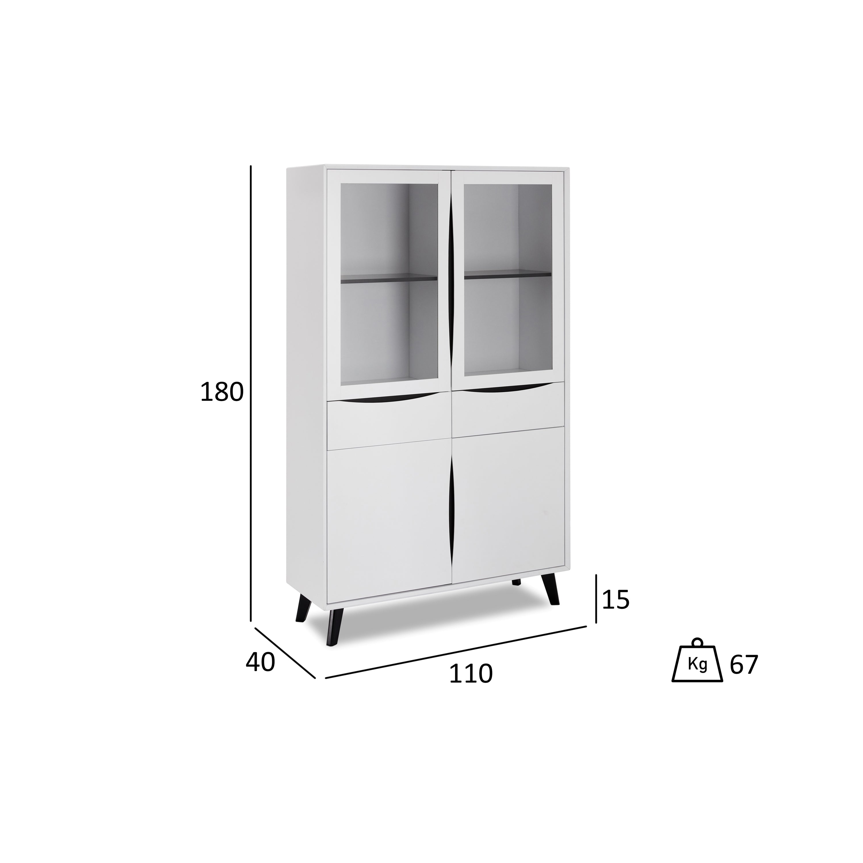 Lynda vitrinekast 2 glazen deuren, 2 deuren, 2 lades wit, zwart. 2 planken achter glazendeuren. Je ontvangt meubels van een goede kwaliteit met een aangenaam comfort, gemaakt in een stijlvol en mooi design. Onze meubels zijn aan zeer aantrekkelijke prijzen. Creëer uw eigen persoonlijke stijl met een nieuw meubel. Combineer met kleinmeubels of een paar mooie woonaccessoires. Hier verkrijg je de nieuwe woningtrends, zoals je ze in tijdschriften en magazines ziet. Bij ons vindt u unieke, praktische en comfortabele meubels met elk zijn eigen, mooi en apart design.
