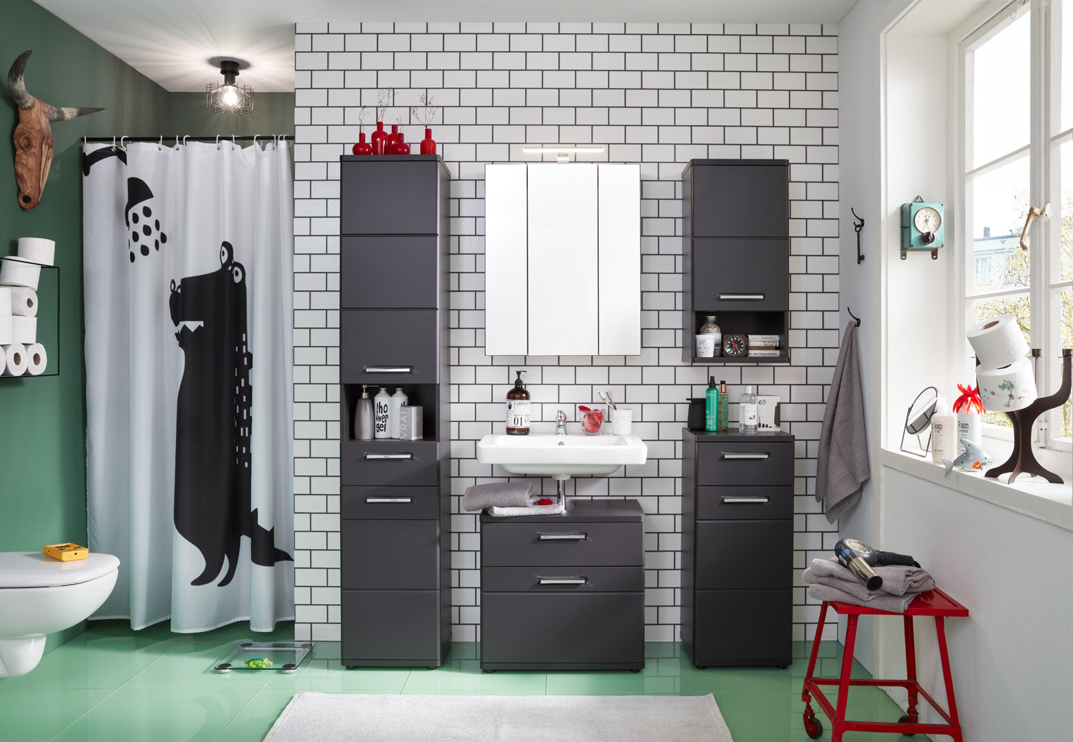 Hioshop Monte kolomkast 2 deuren, 1 lade, 1 open vak grijs, grijs