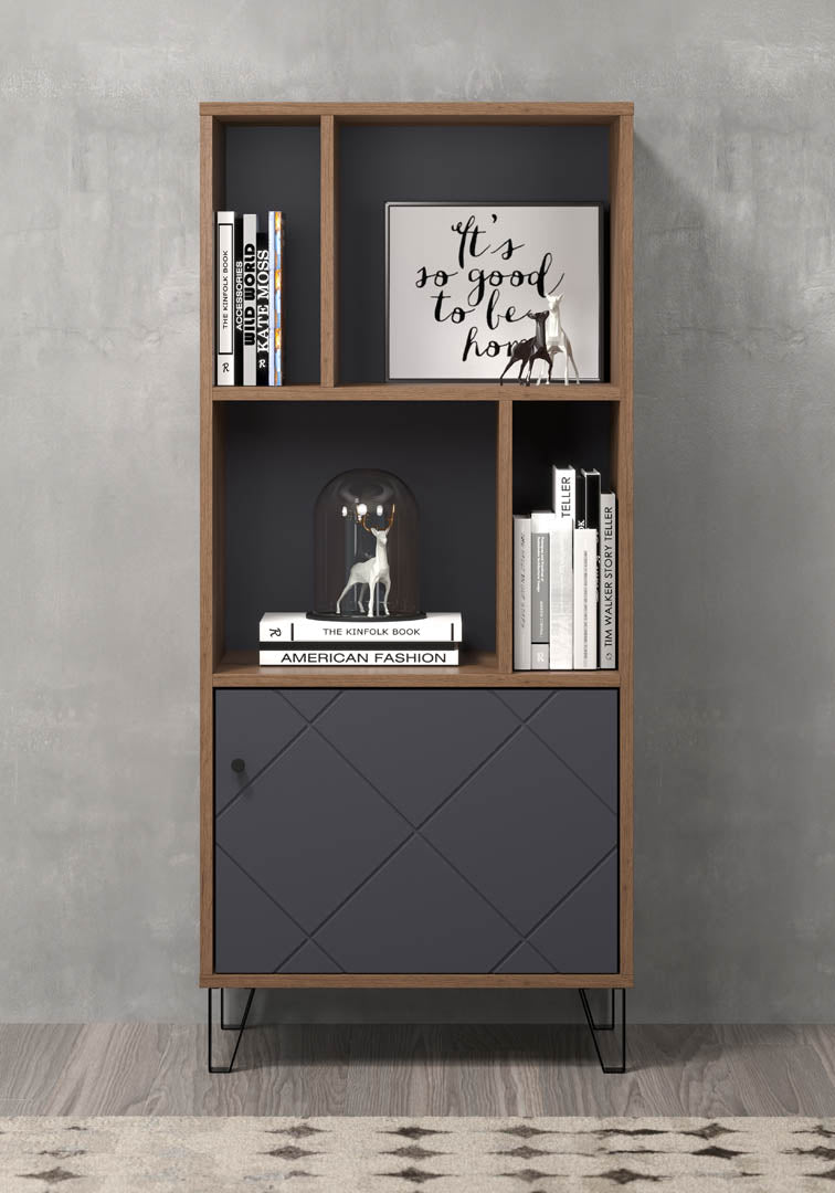 Hioshop Montez wandkast 1 deur, 4 planken, grafiet.