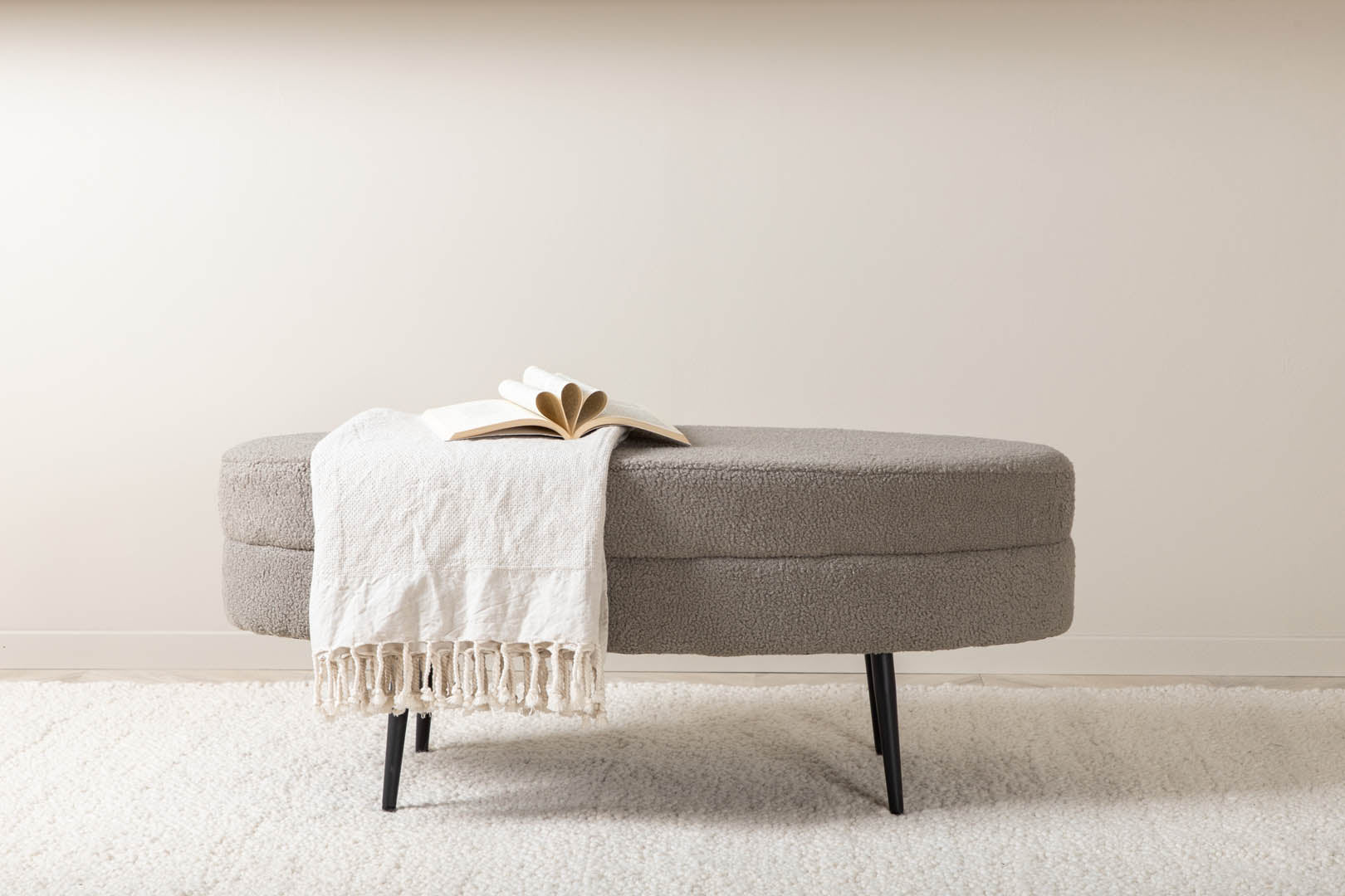 - 1 x Otto poef, hocker teddystof zwart, bruin.
