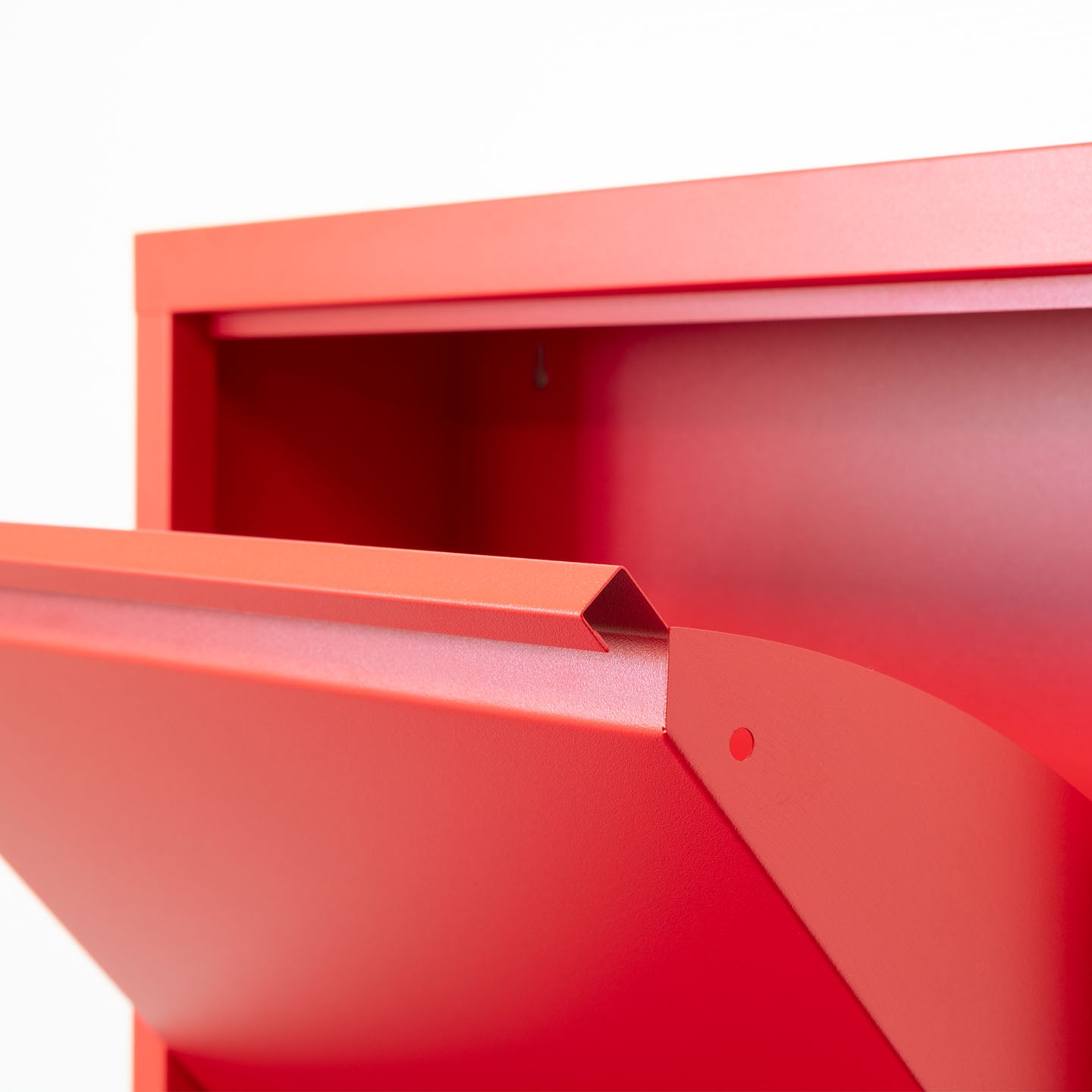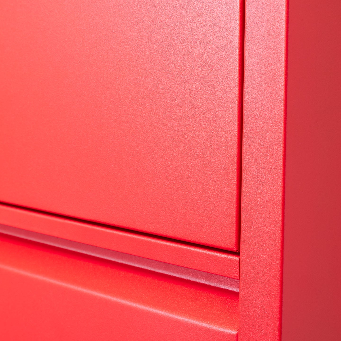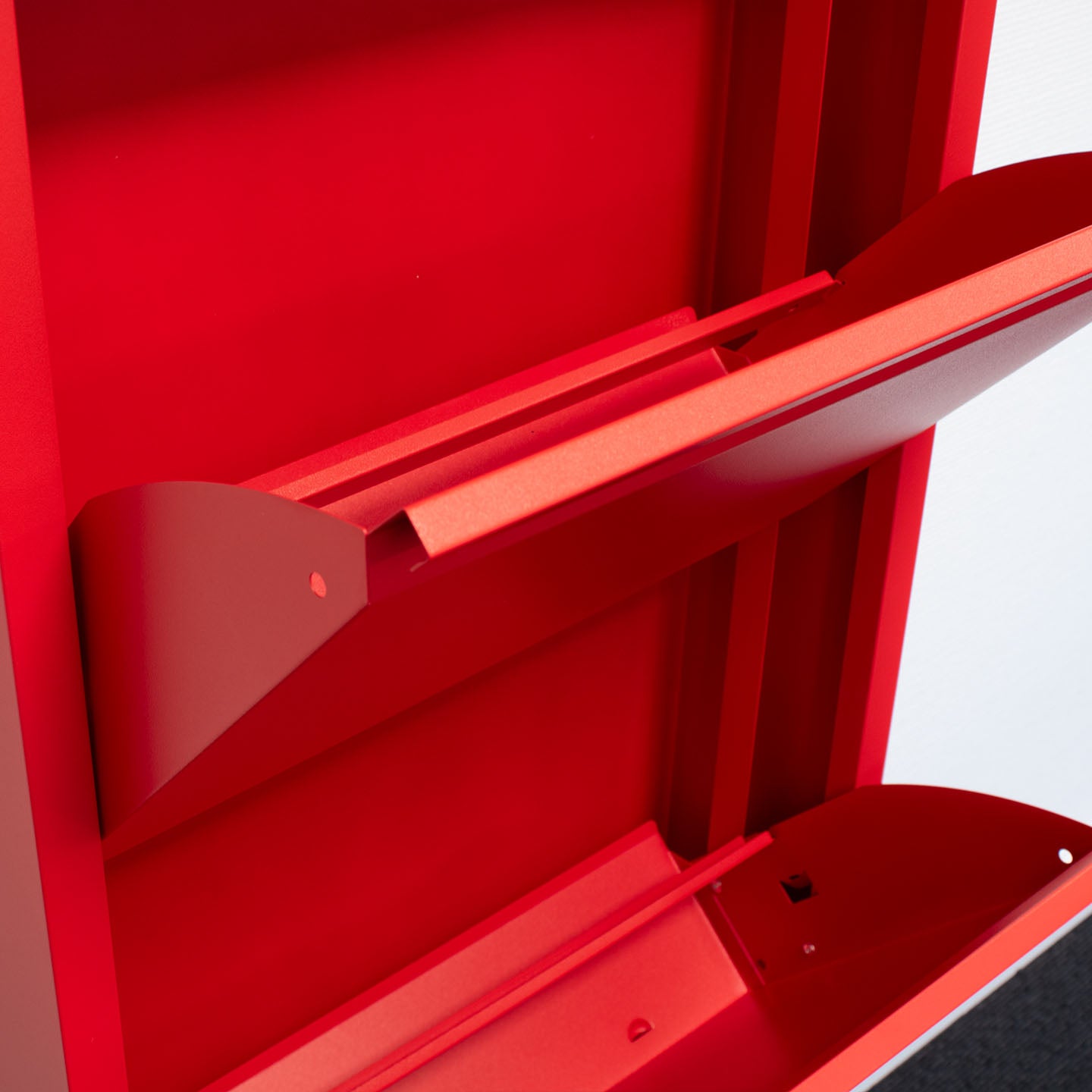 - 1 x Pisa schoenenkast rood metaal met 4 vakken.