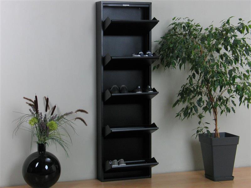 - 1 x Pisa schoenenkast zwart metaal met 5 vakken.