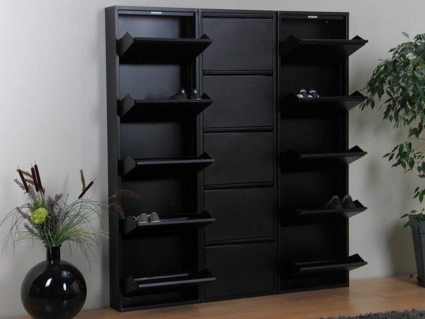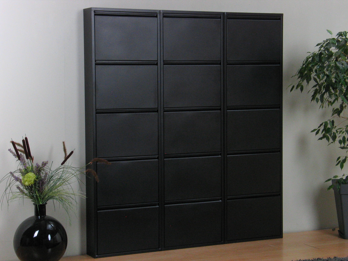 - 1 x Pisa schoenenkast zwart metaal met 5 vakken - set van 3.