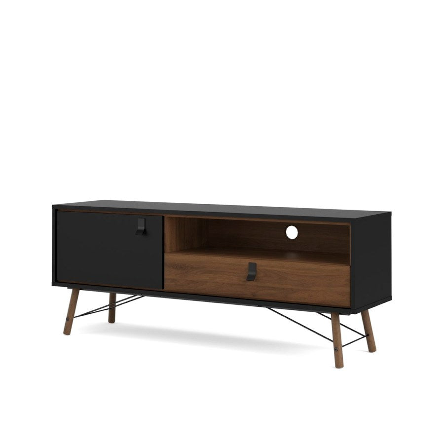 - 1 x Rye TV-meubel 1 deur, 1 lade mat zwart, walnoot decor.