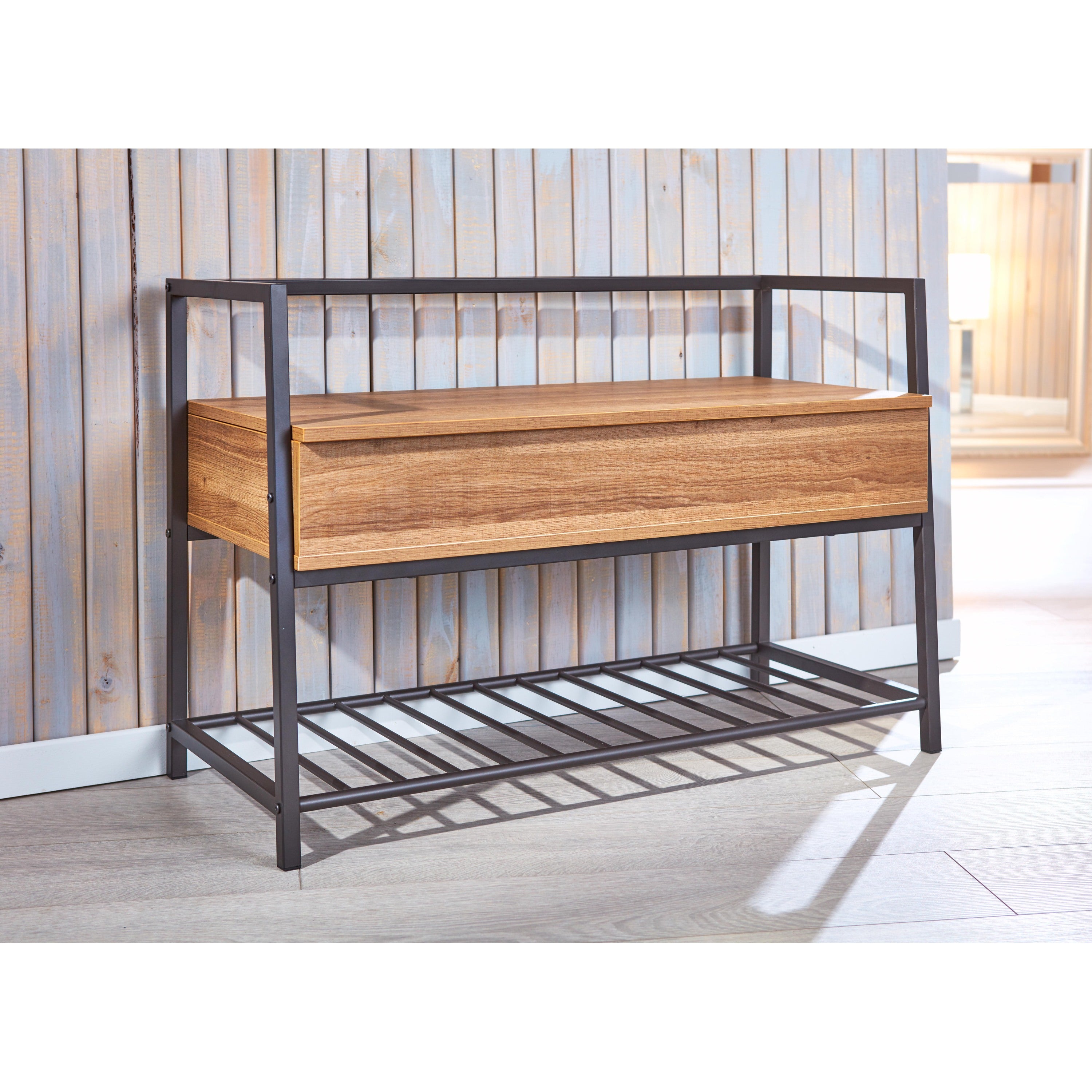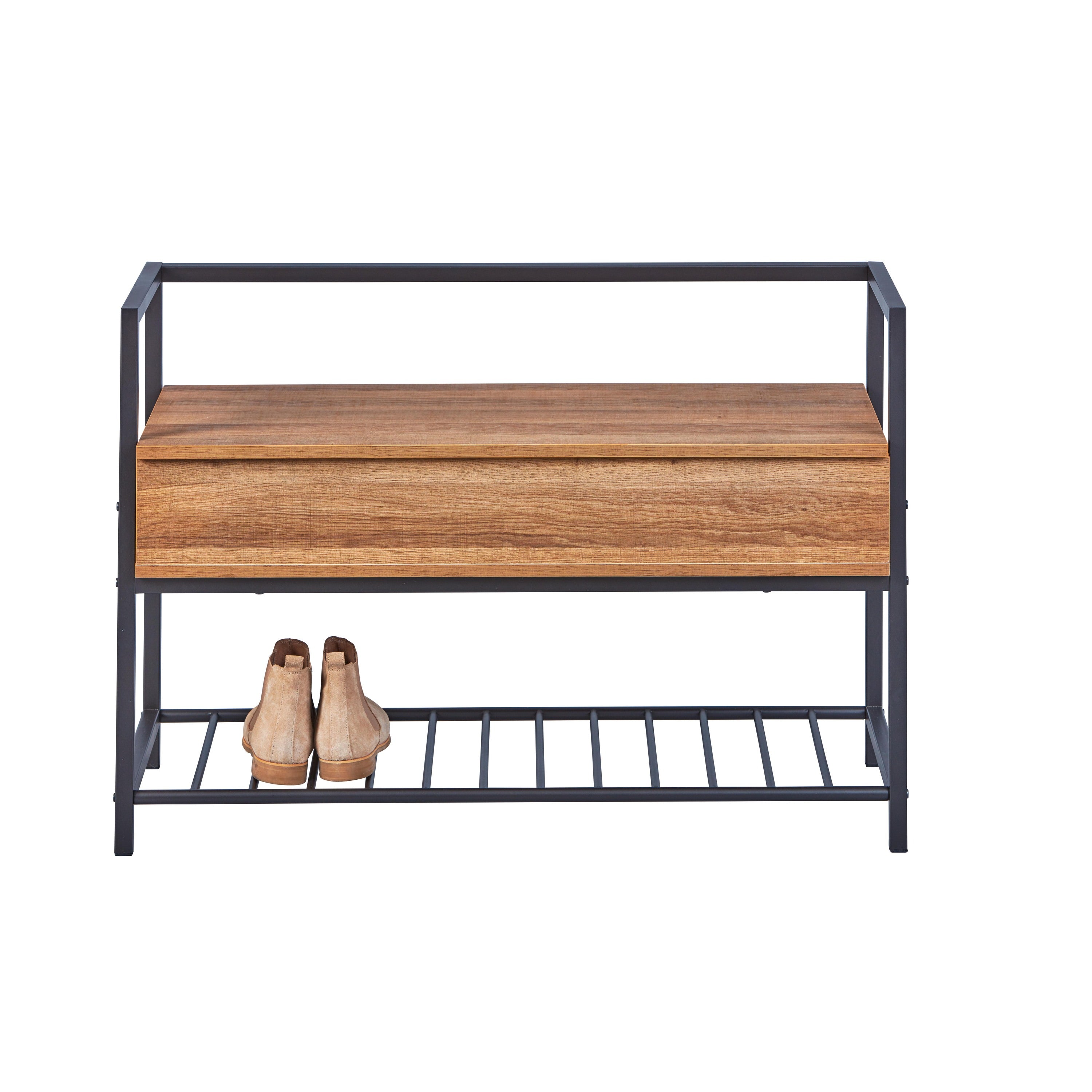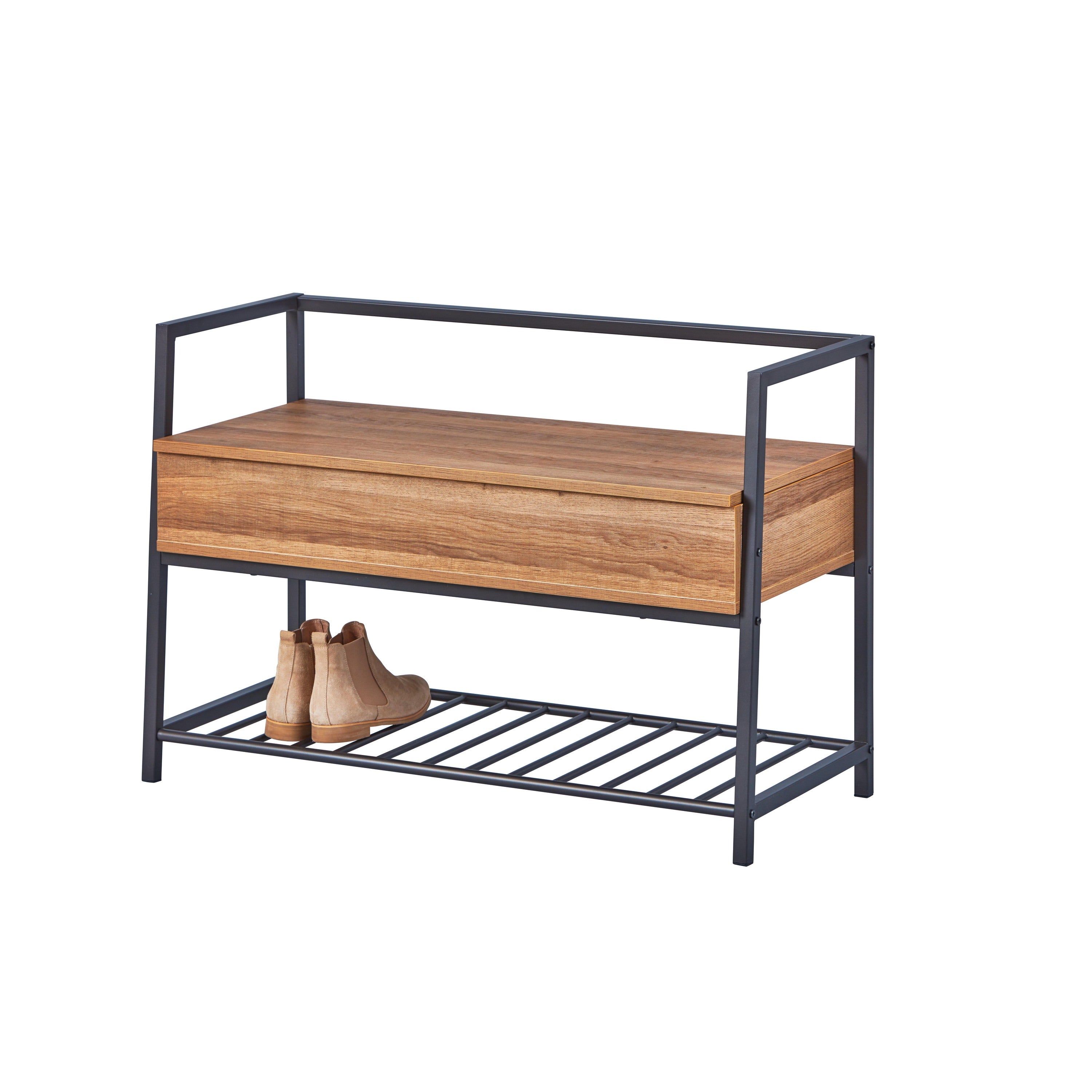 - 1 x Sent schoenenkast met 1 plank en 1 gedeeld vak antraciet en eikenhouten decor.