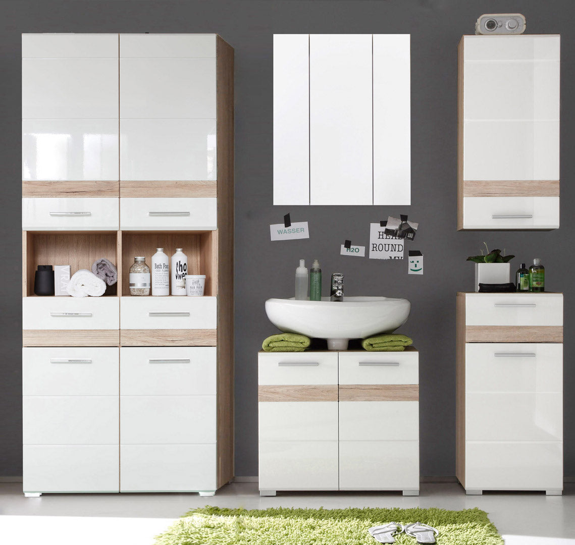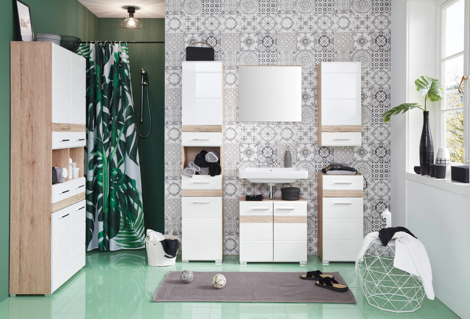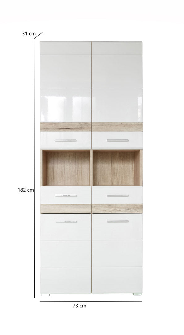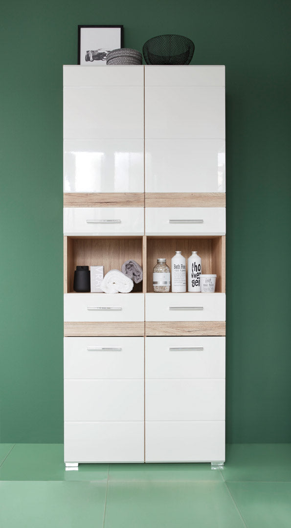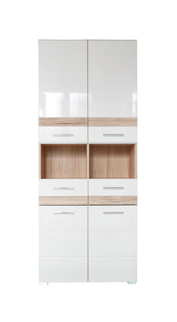 Hioshop SetOne kolomkast 4 deuren, 2 laden, 2 open vakken eiken