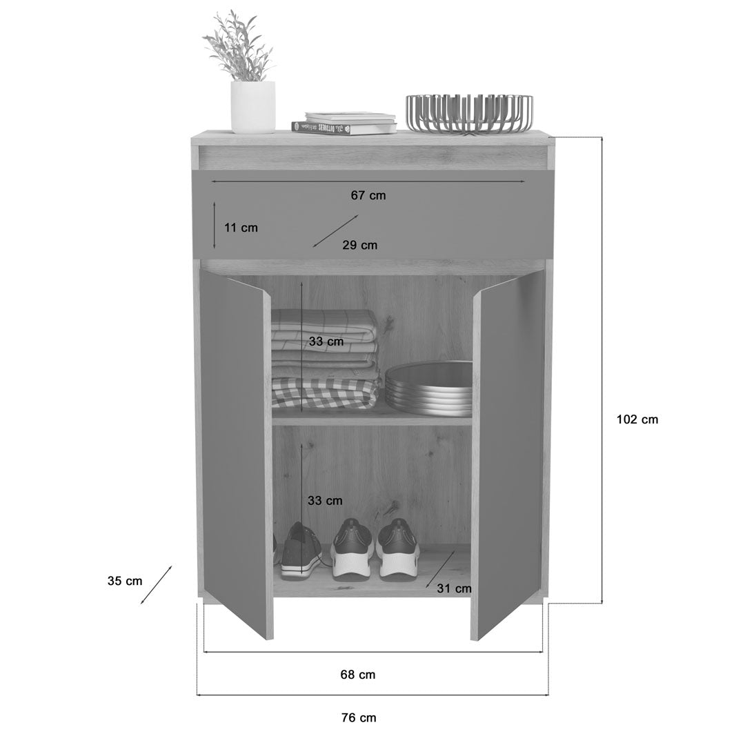 - 1 x Torino schoenenkast 2 deuren, 1 lade eik decor.