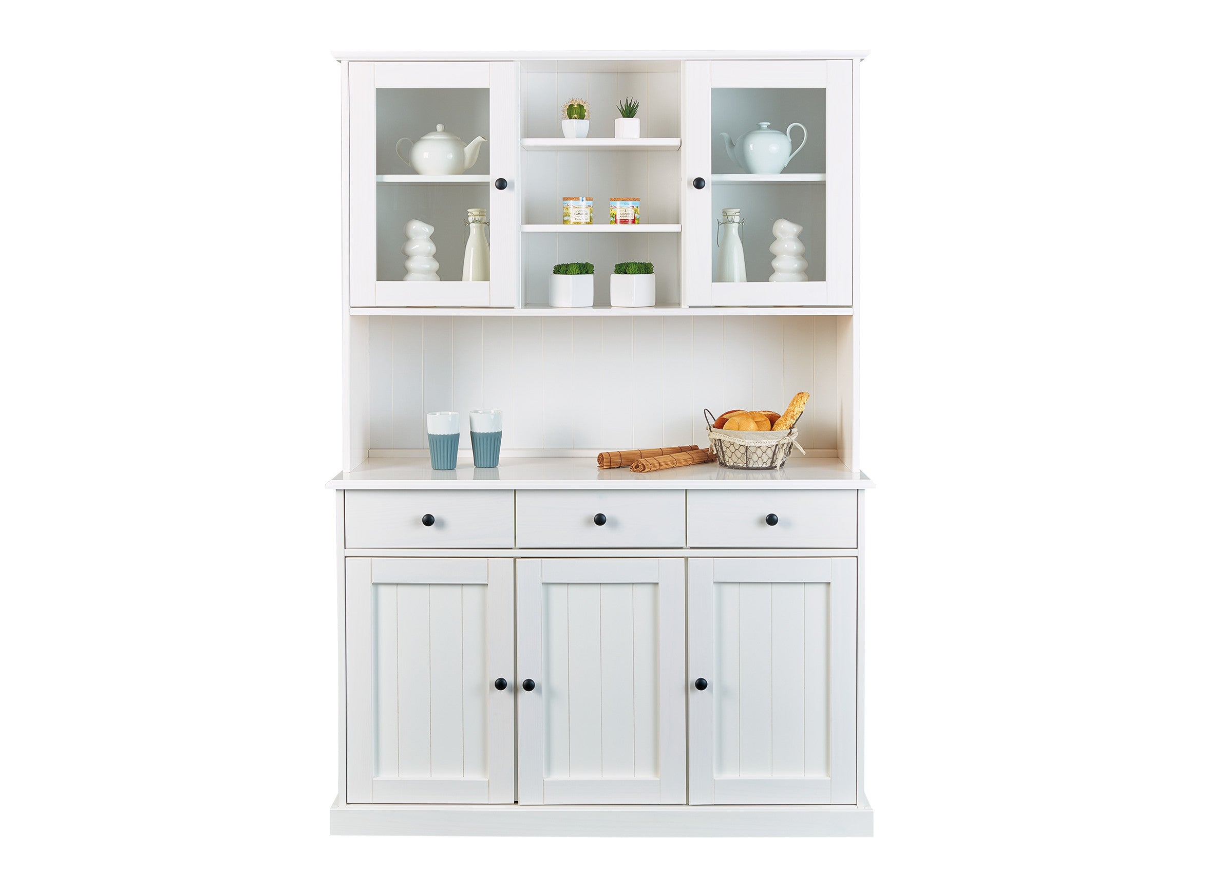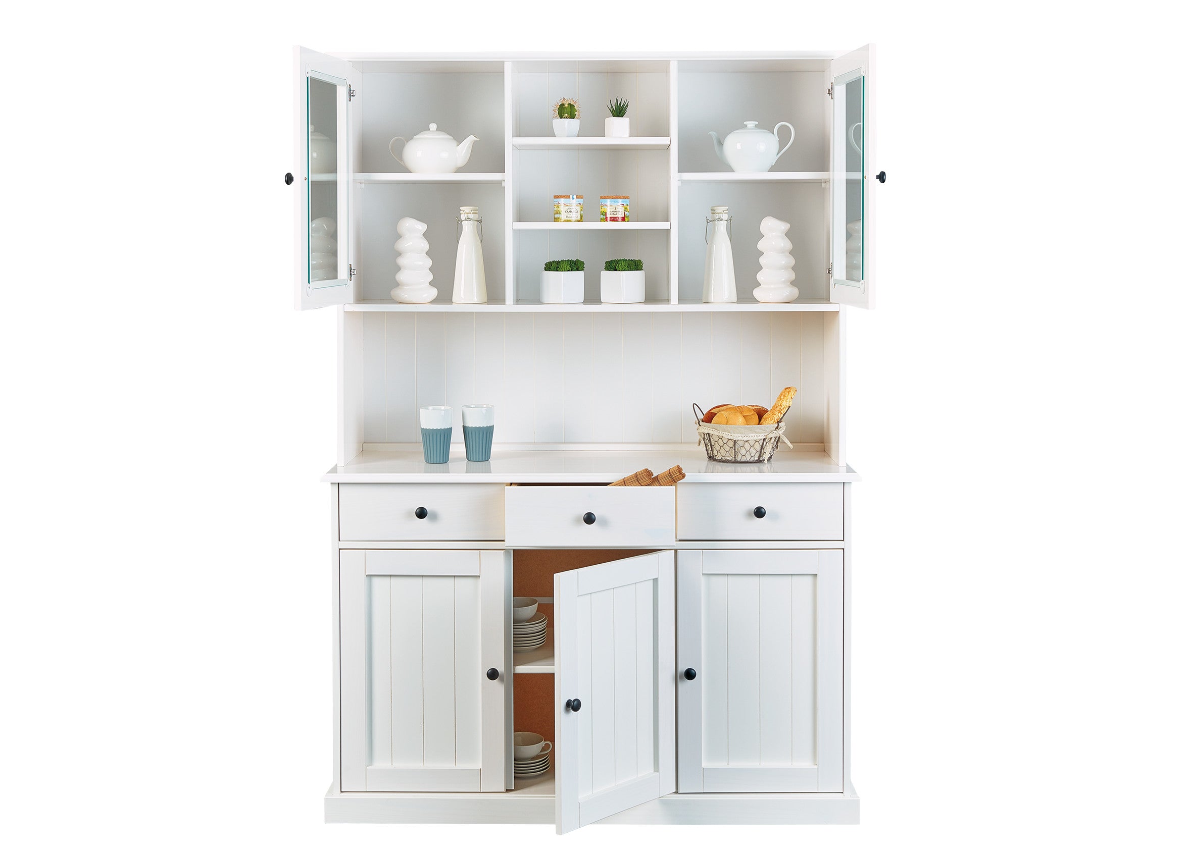 - 1 x Wright vitrinekast 3 deuren, 2 glazen deuren, 3 lades, 3 open ruimtes wit.