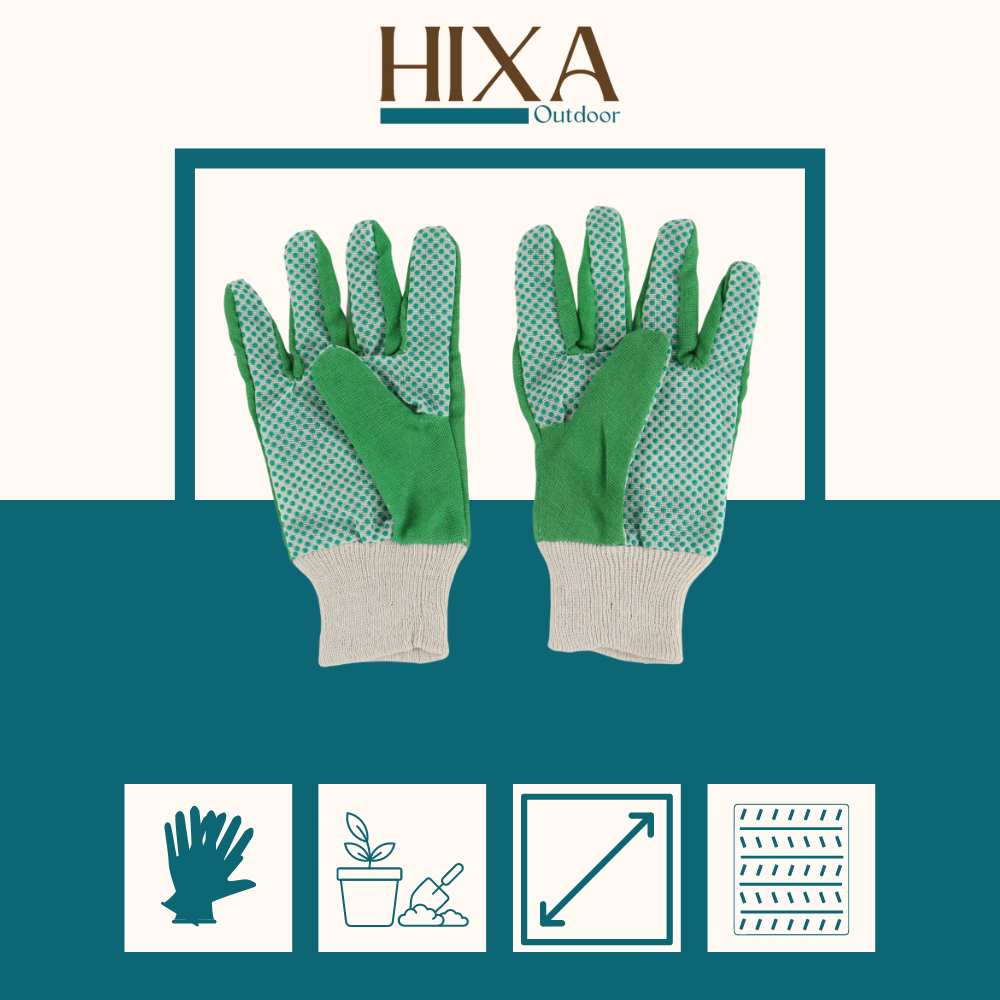 Deze handschoenen van HIXA zijn een handig hulpmiddel voor in de tuin. Gebruik de handschoenen bijvoorbeeld als je bezig bent met planten, struiken of hout. Voorkom met deze handschoenen vuile handen. De handschoenen bevatten kleine rubberen nopjes aan de binnenkant. Deze zorgen voor extra grip tijdens het gebruik. De tuinhandschoenen zijn geschikt voor dames en heren. Door het elastiek op de handschoen sluiten de handschoenen goed aan om de hand. Ook heeft de handschoen een elastische band waardoor de handschoen om de pols goed aansluit.