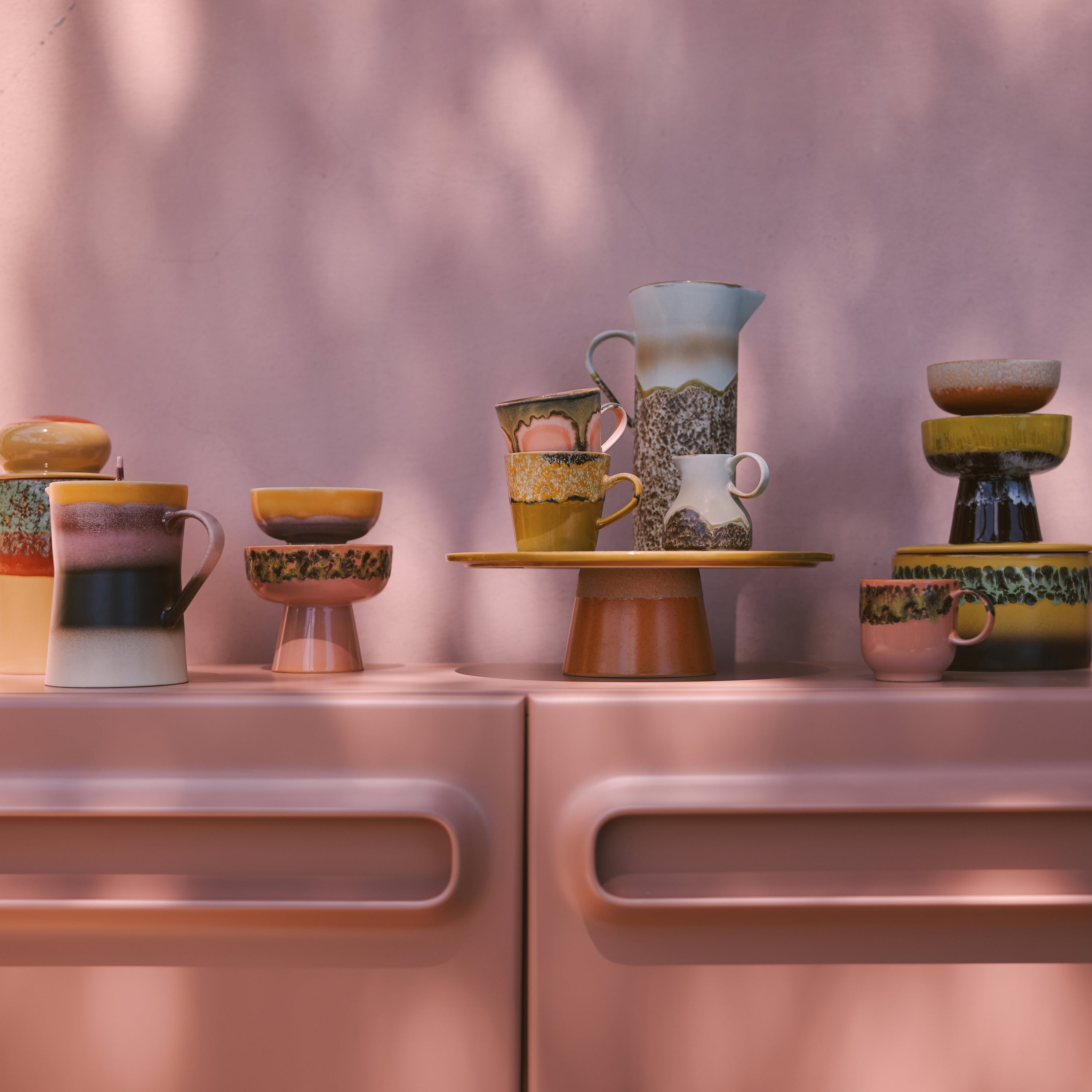 - Elk exemplaar heeft een uniek glazuur in echte 70’s stijl