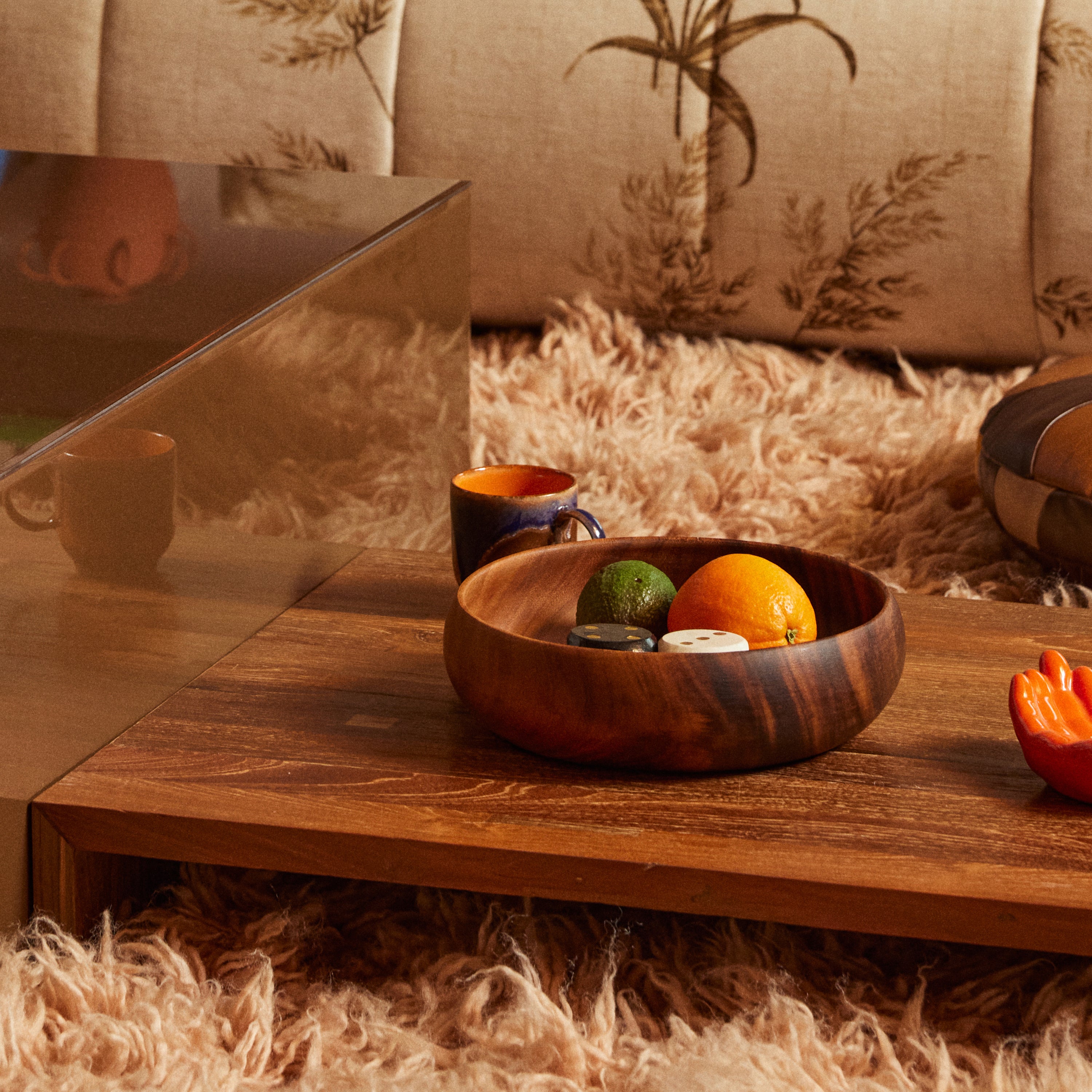 - Deze kom van acaciahout meet H 7,6 x Ø 25,5 cm