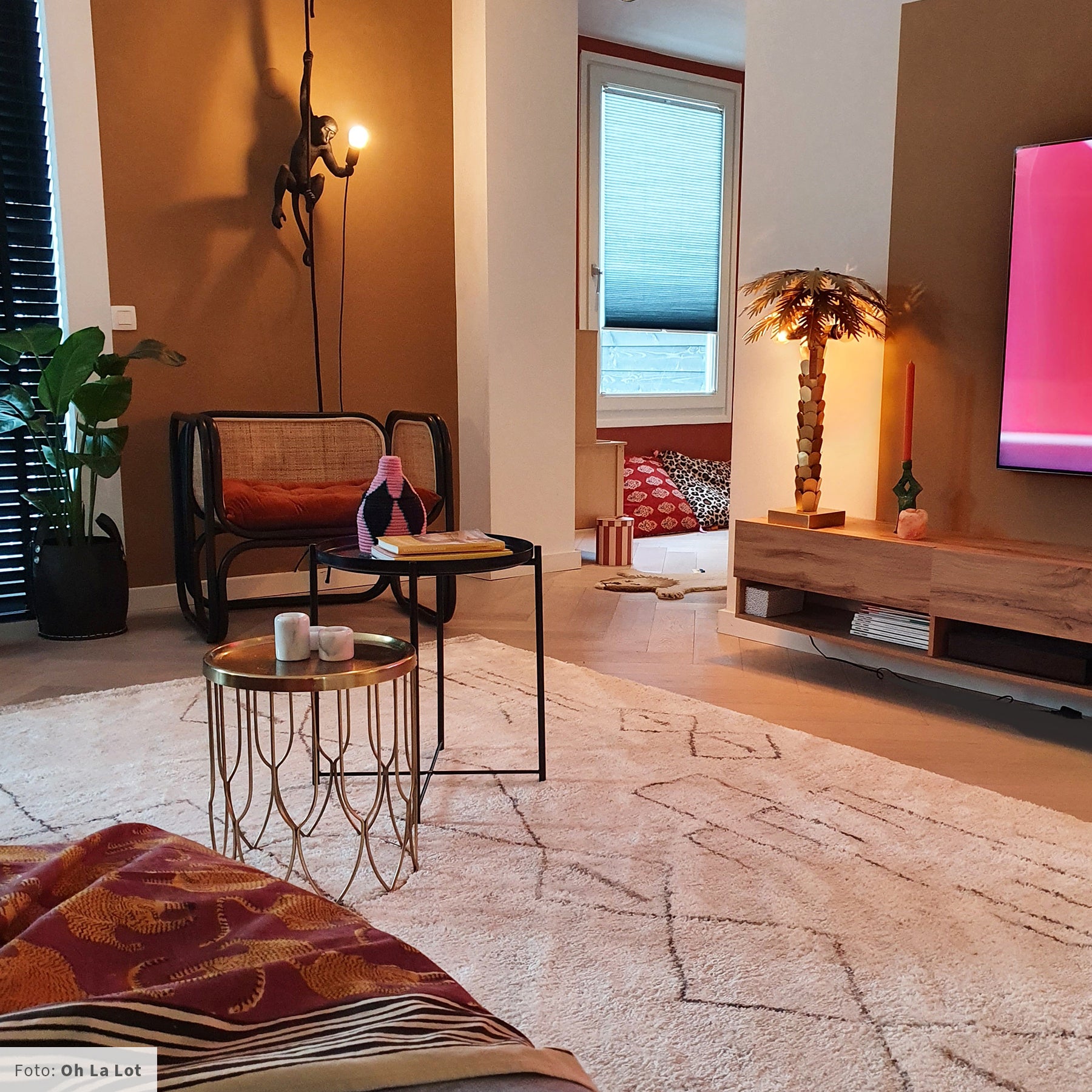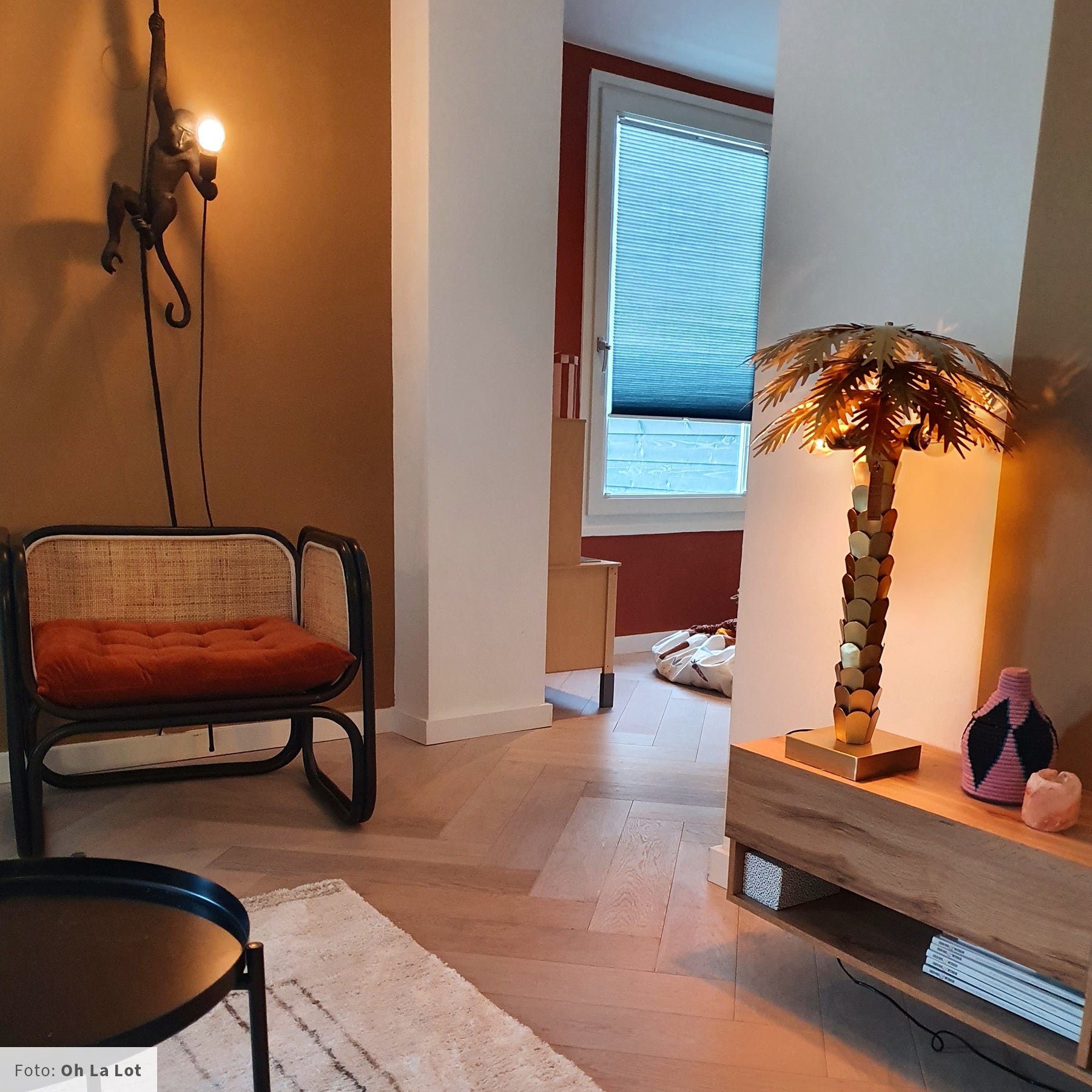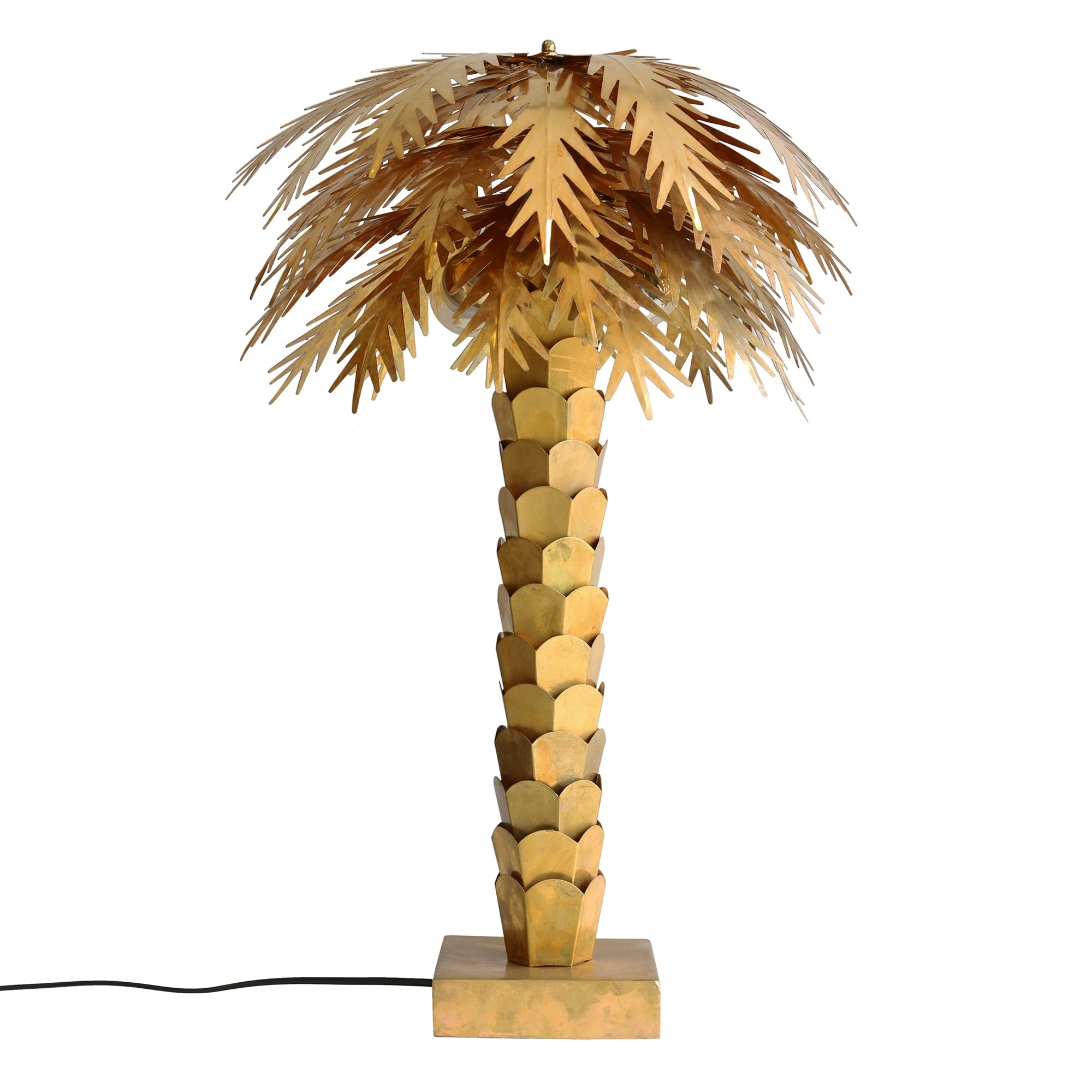 Uniek en bijzonder ontwerp HKliving creëert de meest unieke producten, zo ook deze Palmboom tafellamp! Hier krijg je geheid leuke reacties op van jouw bezoek. Naast uniek is de lamp ook nog eens erg mooi. Het messing is op vernuftige wijze gevormd en aan de basis elkaar bevestigd. Dit maakt de lamp tot een sterk en stevig geheel. De boomstam en bladeren laten de mooie details zien.
