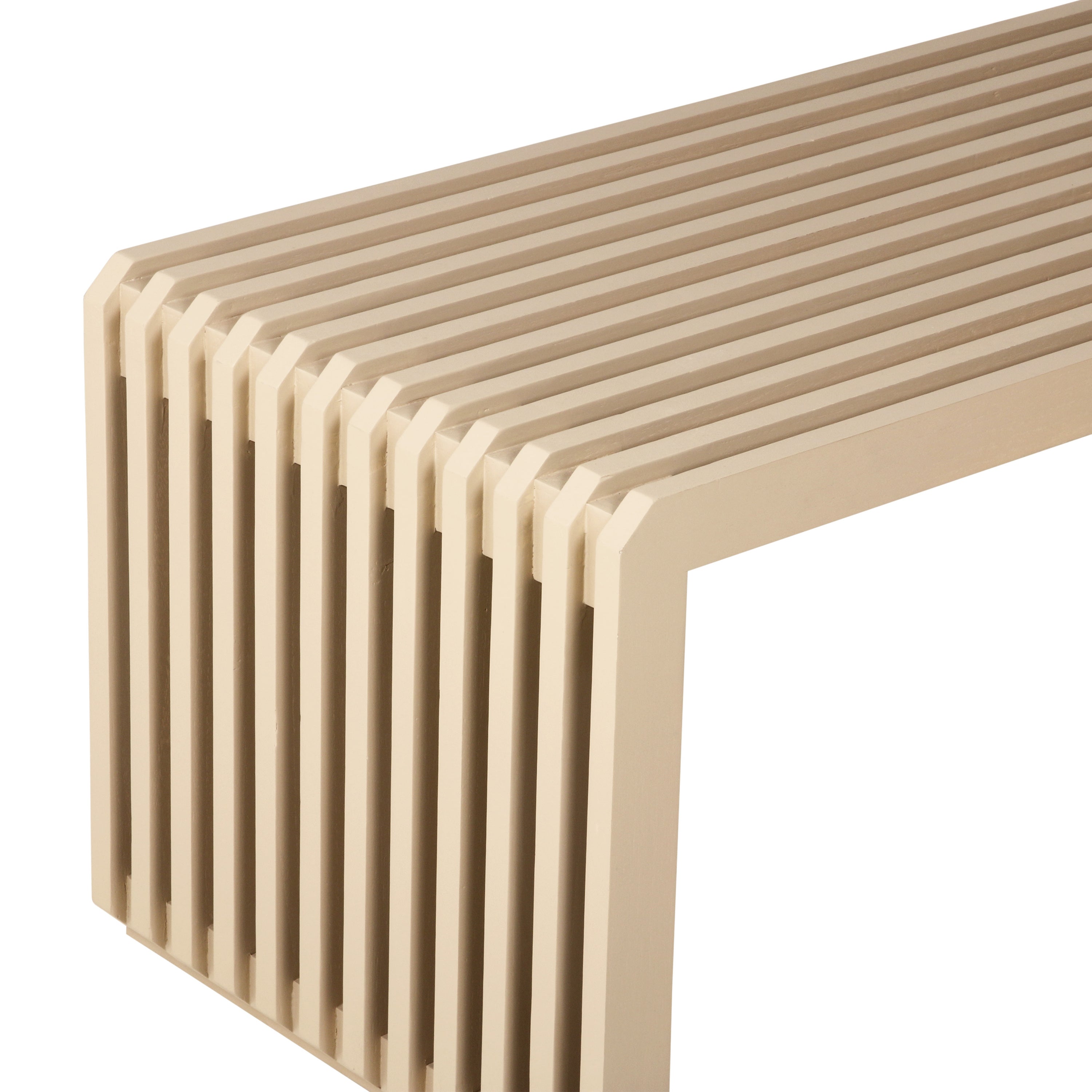 - Het lattenpatroon zorgt voor een luchtig, ritmisch en speels effect