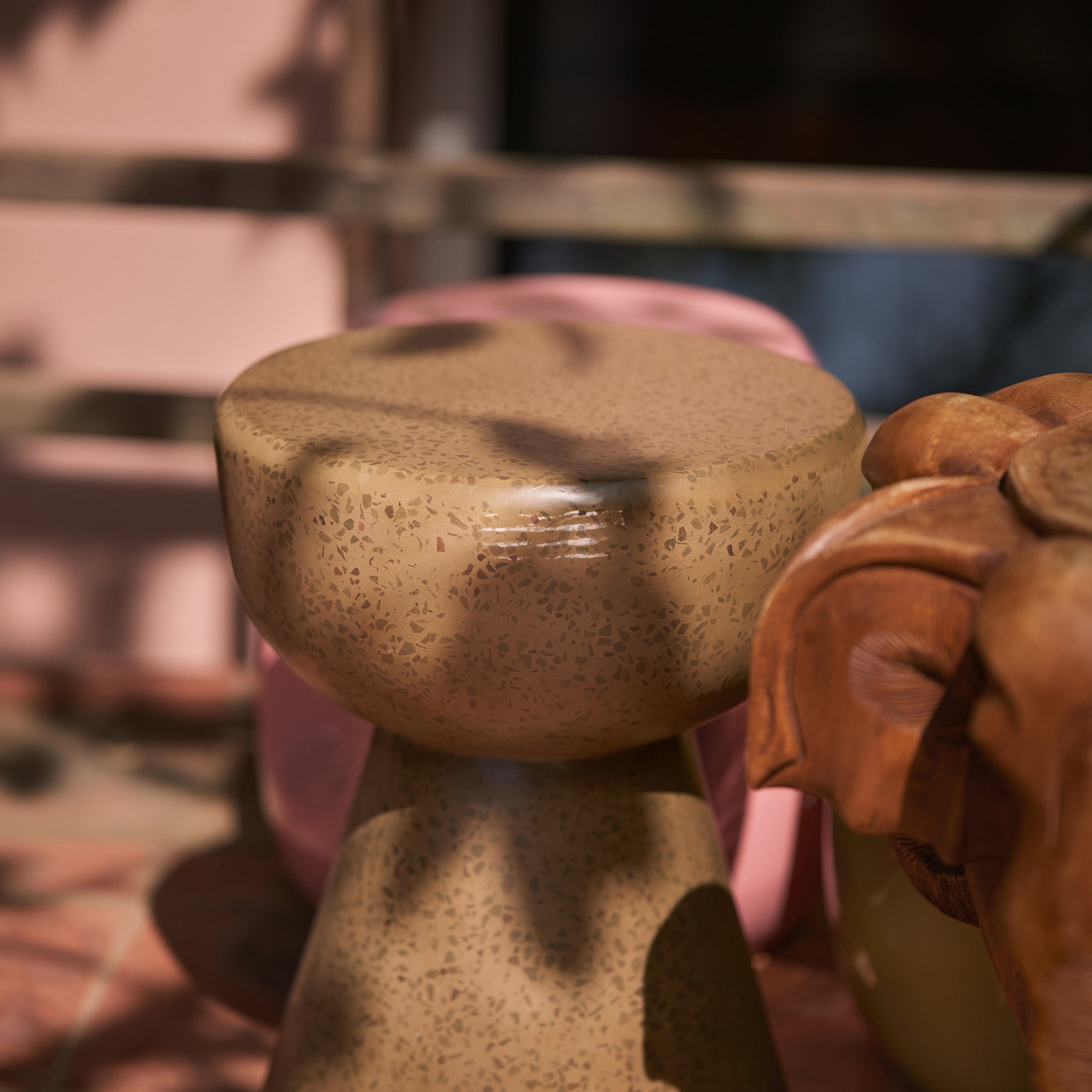 - Het terrazzo patroon geeft deze bijzettafel een warme retro uitstraling