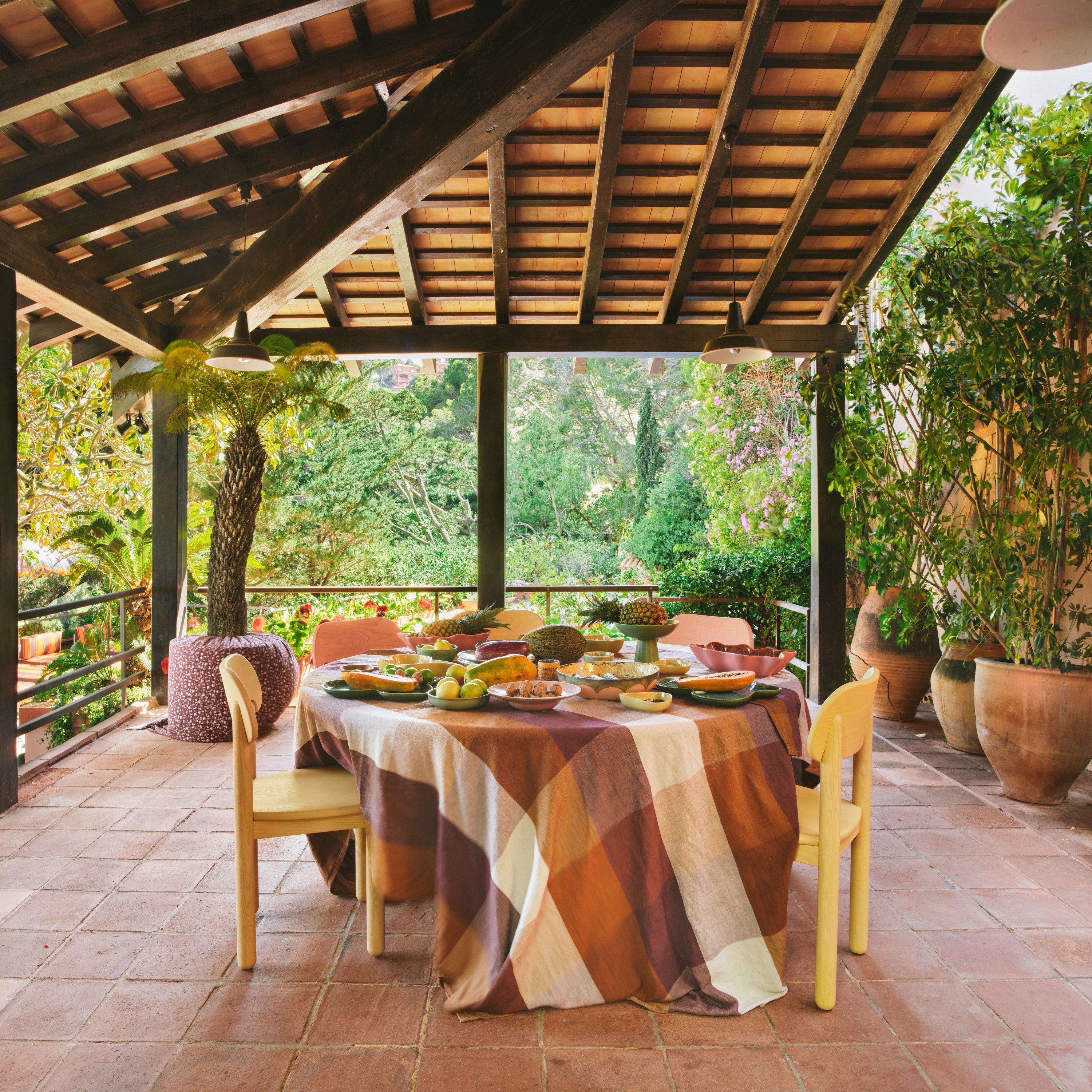 HKliving Vida Check Tafelkleed 140 x 220 cm - Amber / Burgundy
