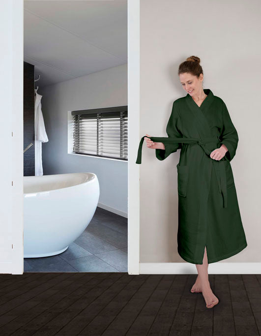 HNL Bath Wafel Badjas Kuitlengte bistro green L