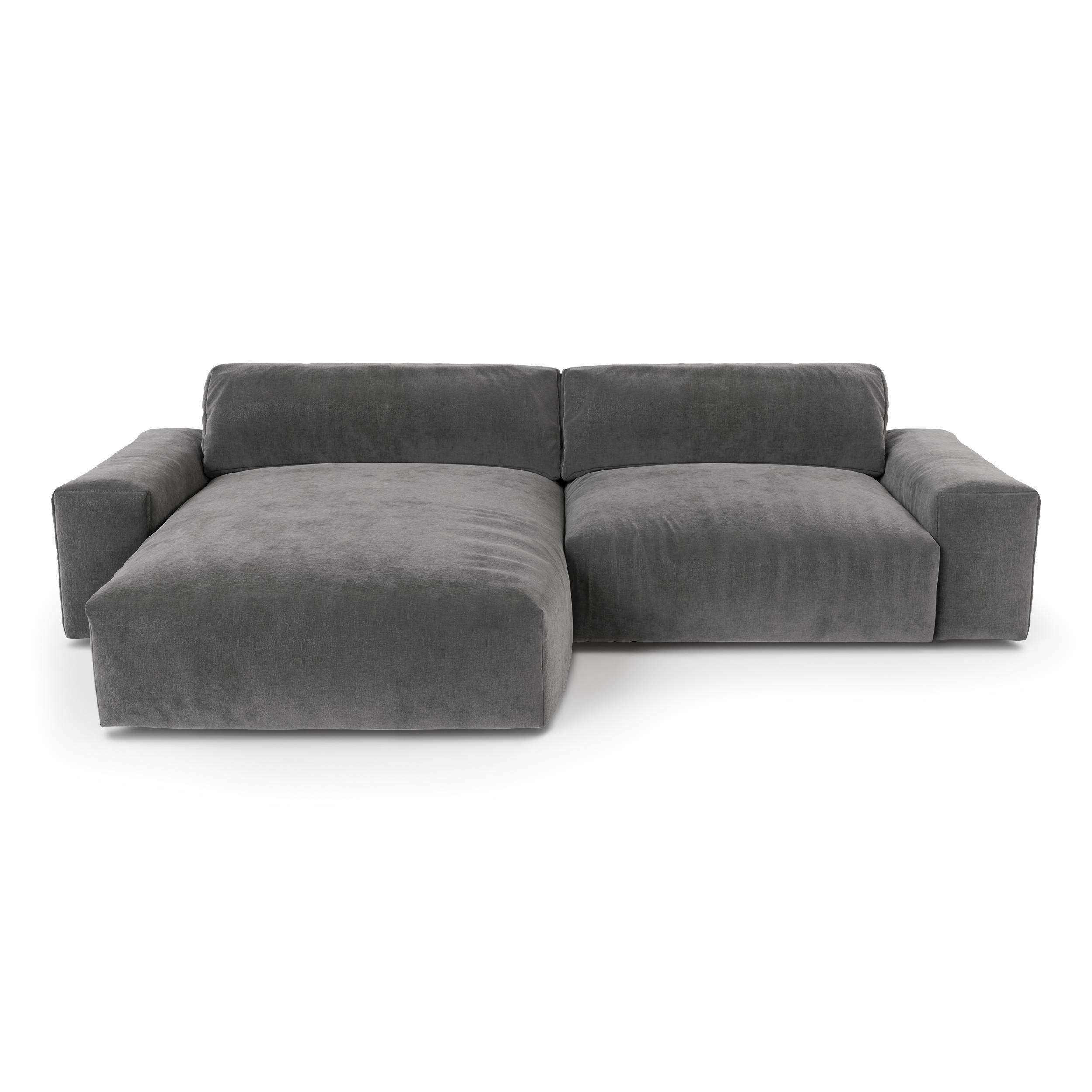 Hoekbank links, 4 zitplaatsen, grafietgrijs fluweel, 310 cm