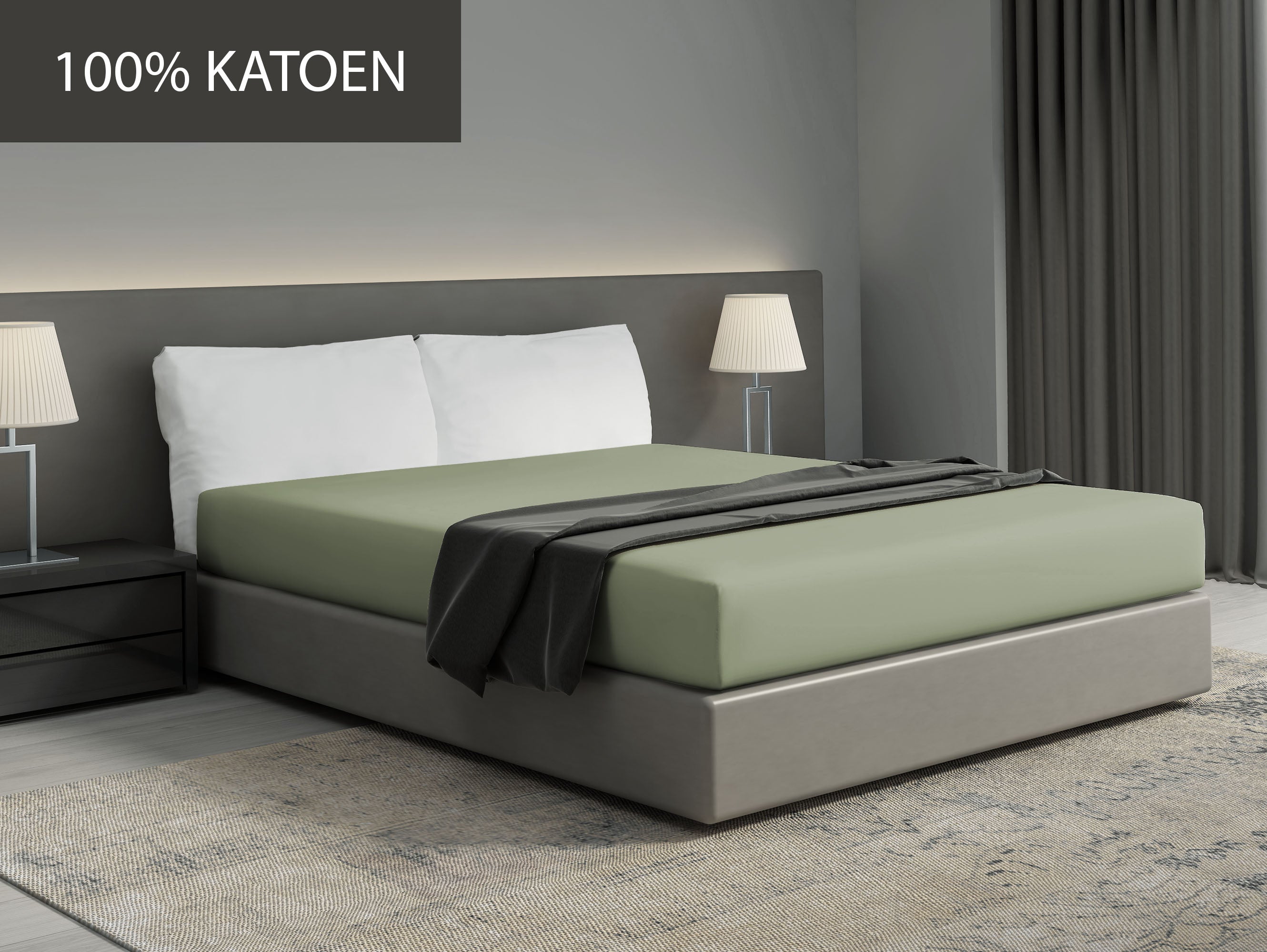 Hoeslaken - 100% natuurlijk katoen - 90x200 - oud groen
