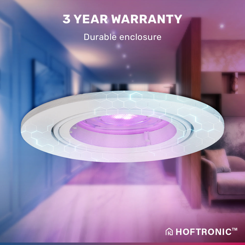 - Deze slimme inbouwspots zijn van het merk HOFTRONIC hierdoor profiteer je van 3 jaar. De sptjes hebben een levensduur van 50.000 uur