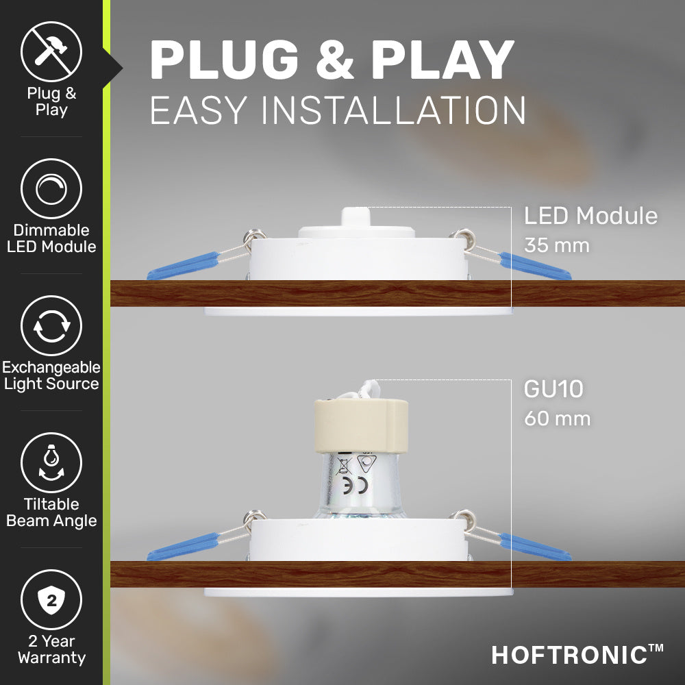 - HOFTRONIC Inbouwspots: Deze inbouwspots zijn van het merk HOFTRONIC. Je ontvangt 2 jaar garantie op deze spots.