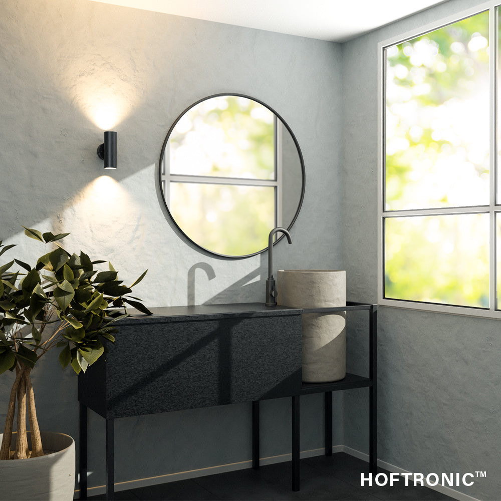 Moderne Up & Down light wand buitenlamp geschikt voor GU10 spots. Deze mooie wandlamp is door de IP44 waarde geschikt voor vochtige ruimtes, tevens zijn de spots eenvoudig vervangbaar en ontvang je 2 jaar garantie.