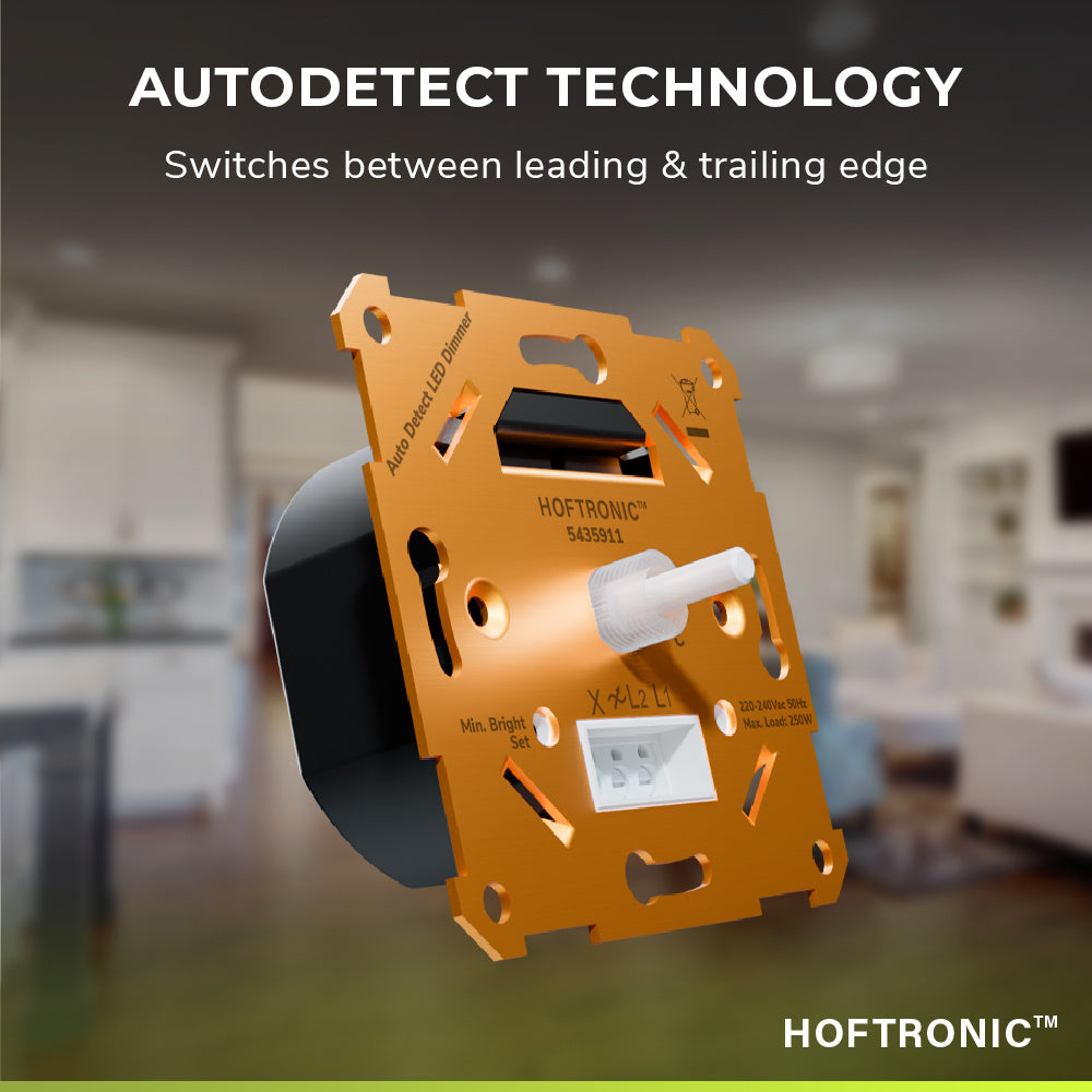 - Deze dimmer kun je gebruiken om lampen met de techniek Fase aansnijding & Fase afsnijding met auto detectie te dimmen.