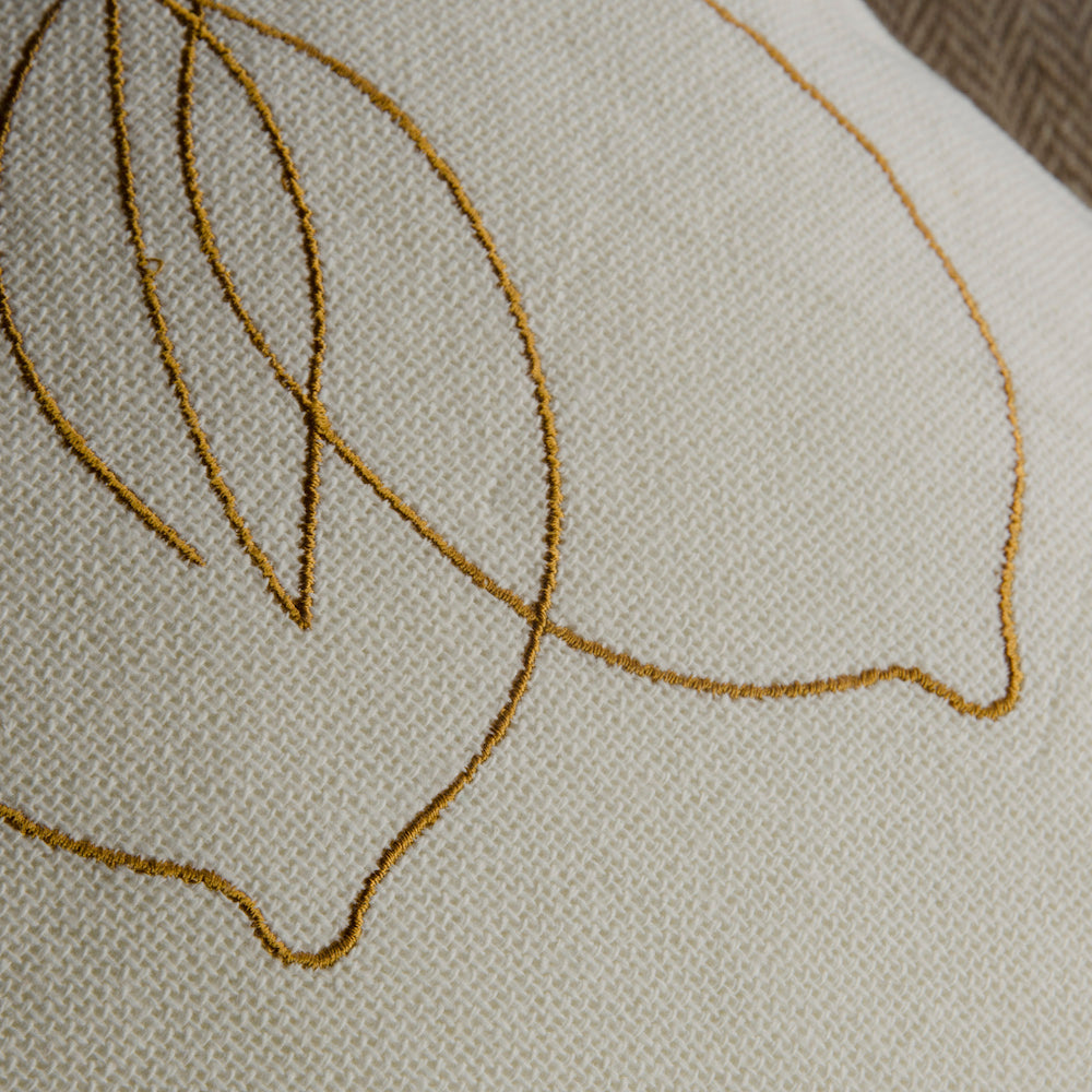 Onze favoriet, dit vrolijke citroen kussen. De citroenen zijn fijn geborduurd met mooi mosterd kleurig draad. De achterkant is effen mosterd. Mix met onze verschillende andere kussens voor een warm interieur.