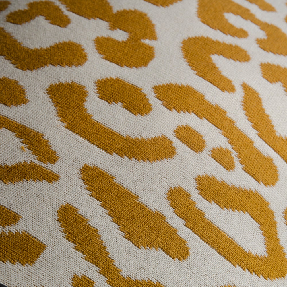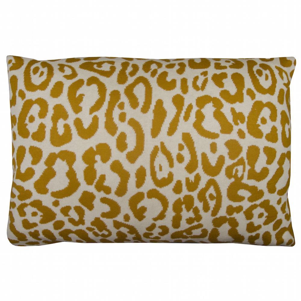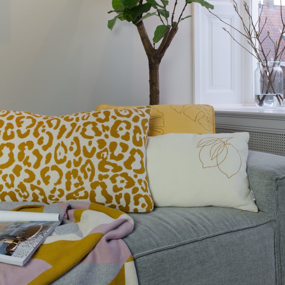 Wat een fijne kleur heeft dit Leopard kussen. Zo haal je de warmte wel in huis. Het kussen is fijn gebreid met ecru en mosterd. Leuk om te combineren met het Leopard plaid.