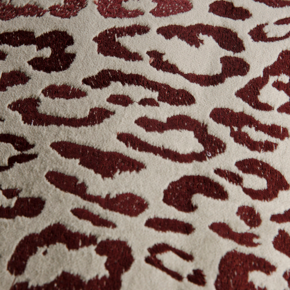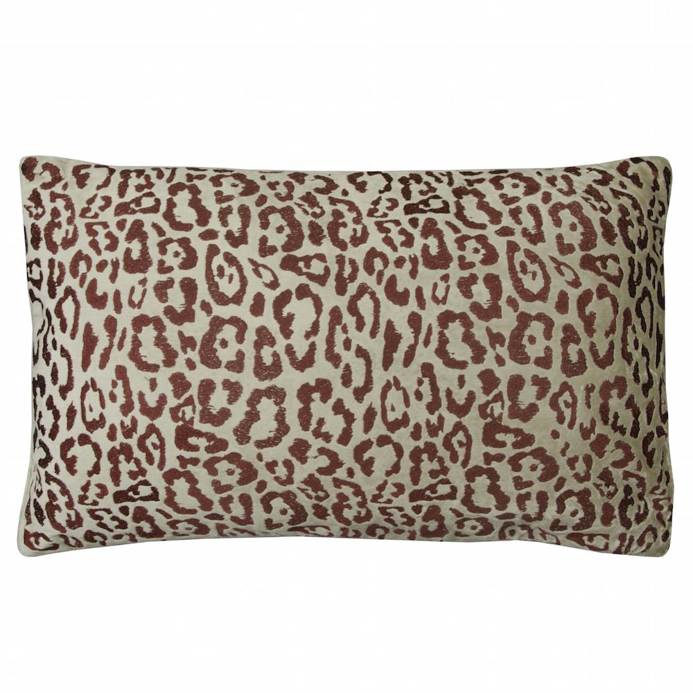 De dieren prints zijn niet meer weg te denken in het interieur. Dit luipaard sierkussen is mooi fijn geborduurd met donkerrood draad. De achterkant heeft een velvet streep patroon, ideaal om het kussen aan twee kanten te gebruiken. Echt een chique kussen voor in de slaapkamer of op je bank.