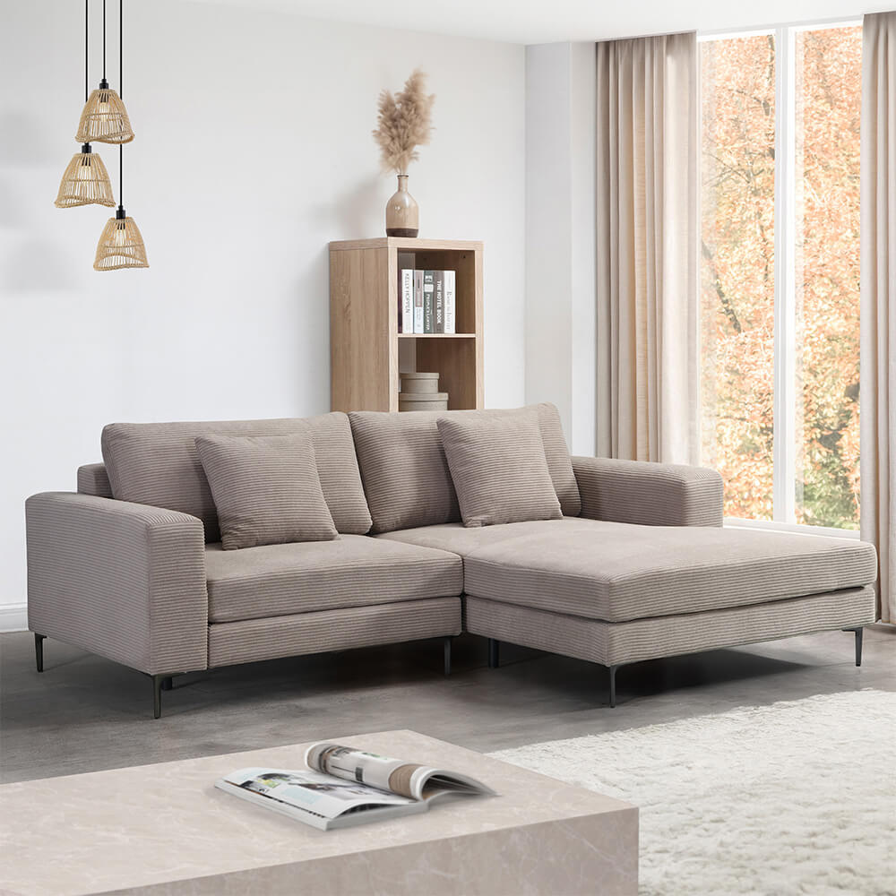 HOME DELUXE 2-zitbank - Chaise Longue Rechts - Ribfluweel - Beige
