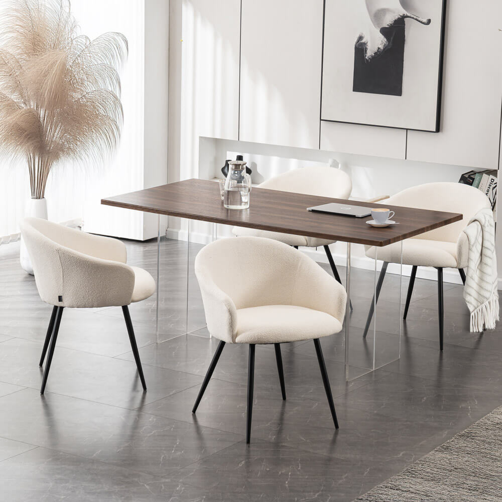 HOME DELUXE Eetkamerstoel - Bouclé - Wit - Set van 4