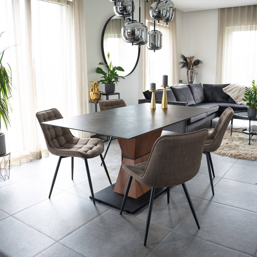 HOME DELUXE Eetkamerstoel – Webstof – Grijs|Bruin – Set van 4