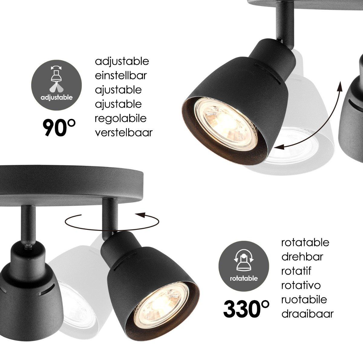 - De spots zijn verstelbaar, kantelbaar en draaibaar. Ideaal voor het verlichten van de woonkamer, slaapkamer, studeerkamer, hobby ruimte en de hal.