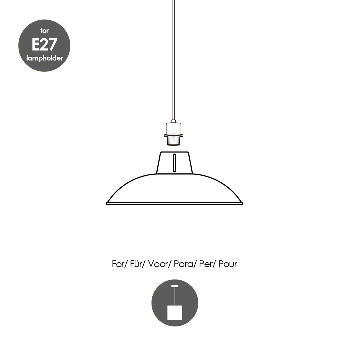 - De E27 lamphouder in de lampenkap is eenvoudig aanpasbaar naar E14 met een opvulring (bestel dit artikel separaat F501100-20 8715582895310).