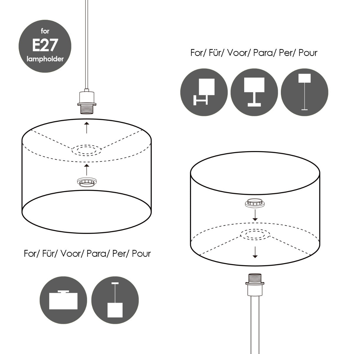 - De E27 lamphouder in de lampenkap is eenvoudig aanpasbaar naar E14 met een opvulring (bestel dit artikel separaat F501100-20 8715582895310).