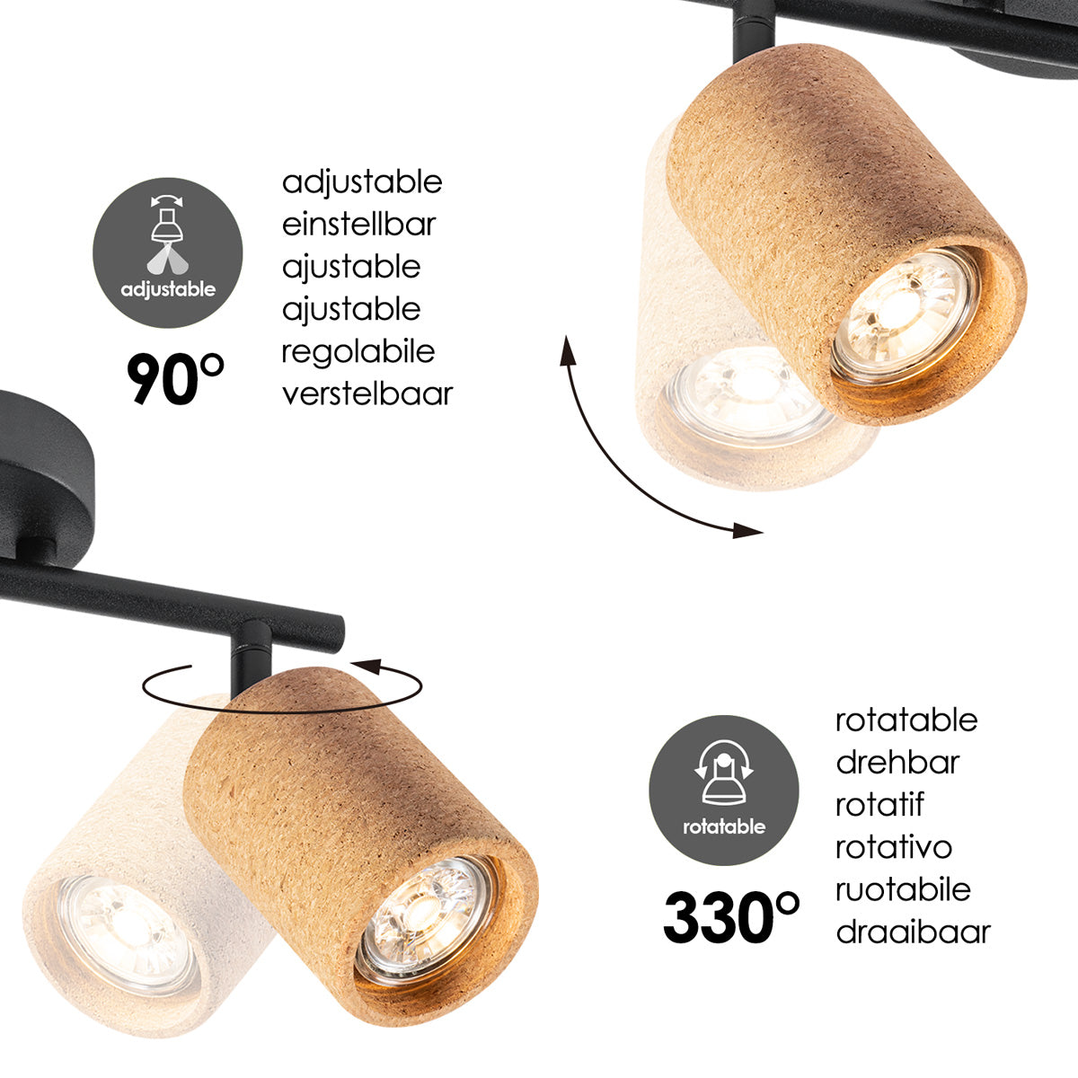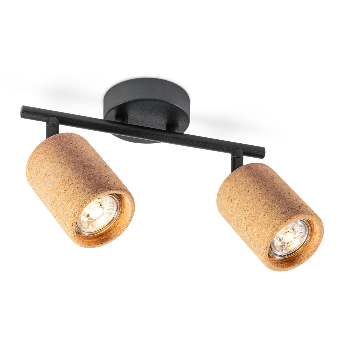 2-Lichts LED opbouwspot Cork heeft een natuurlijke uitstraling dankzij de ronde kapjes van kurk. De 2 lichtpunten kun je naar elke richting verstellen zodat er goed licht en zicht is op de juiste plek. De opbouwspot van het merk Home sweet home