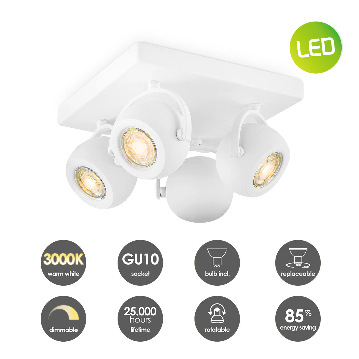Home Sweet Home LED Opbouwspot Nop 4 - incl. dimbare LED lamp - wit