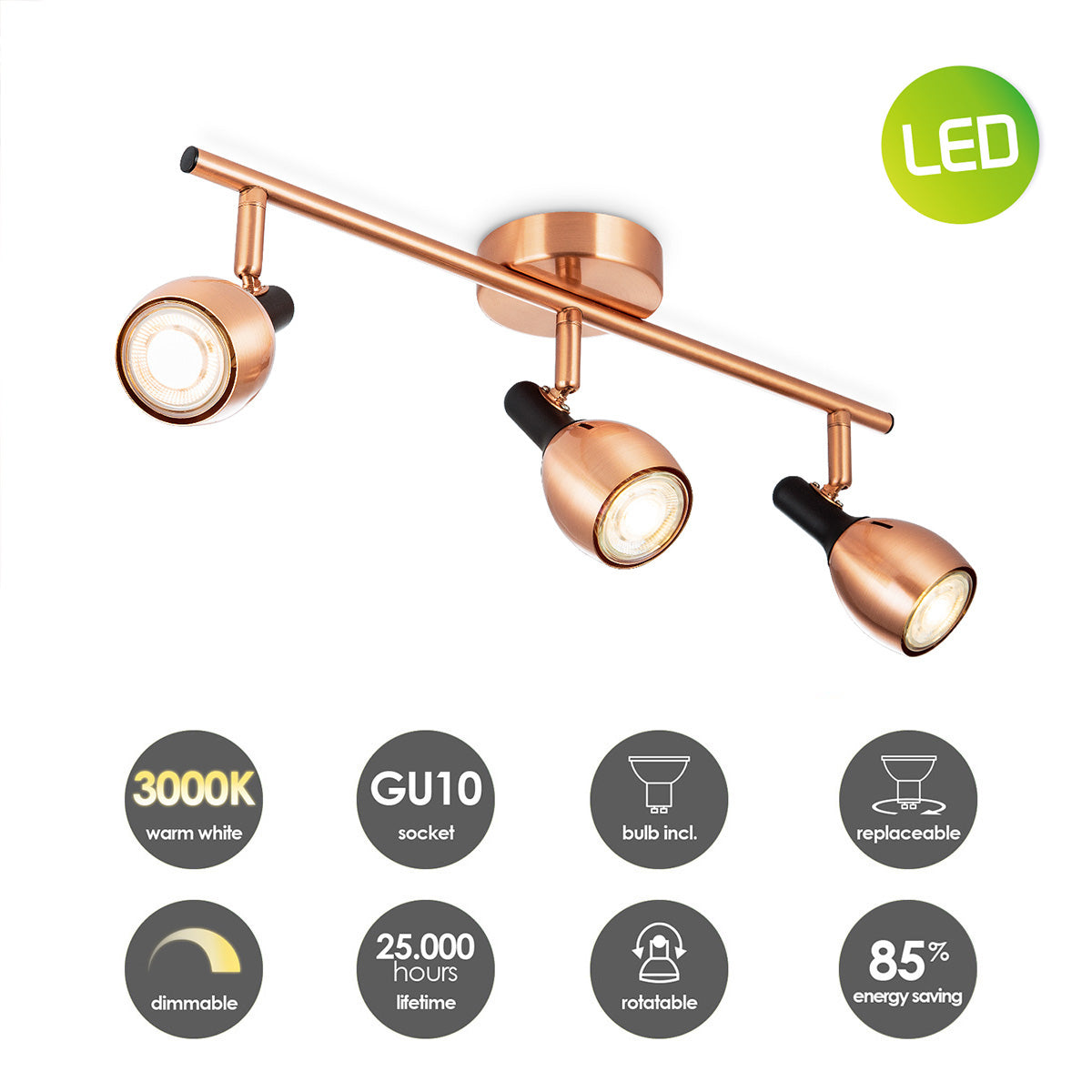 Home Sweet Home LED Opbouwspot Novi 3 - incl. dimbare LED lamp - Koper