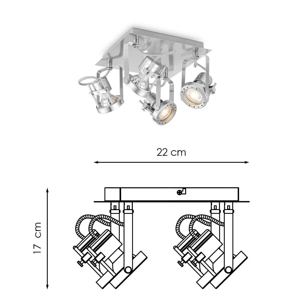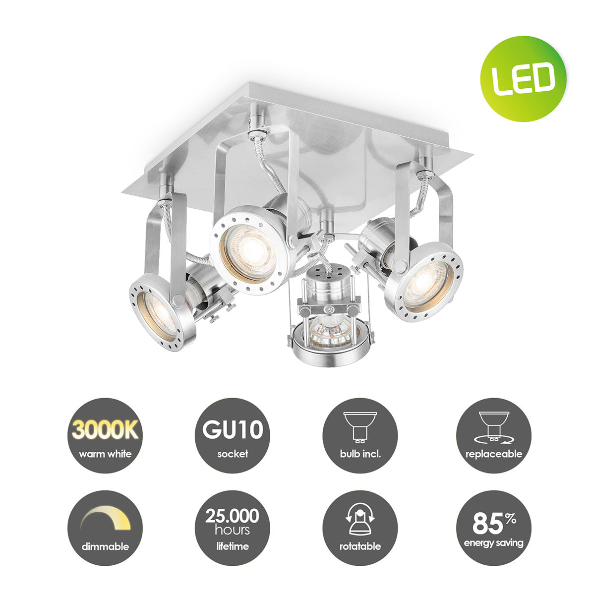 - De spots zijn verstelbaar, kantelbaar en draaibaar. Ideaal voor het verlichten van de woonkamer, slaapkamer, studeerkamer, hobby ruimte en de hal.