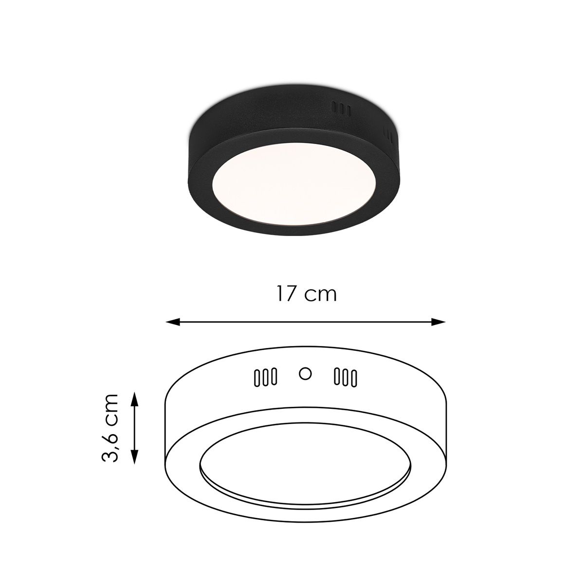 Home Sweet Home LED Plafondlamp Ska - Zwart - Rond 17|17|3.6cm
