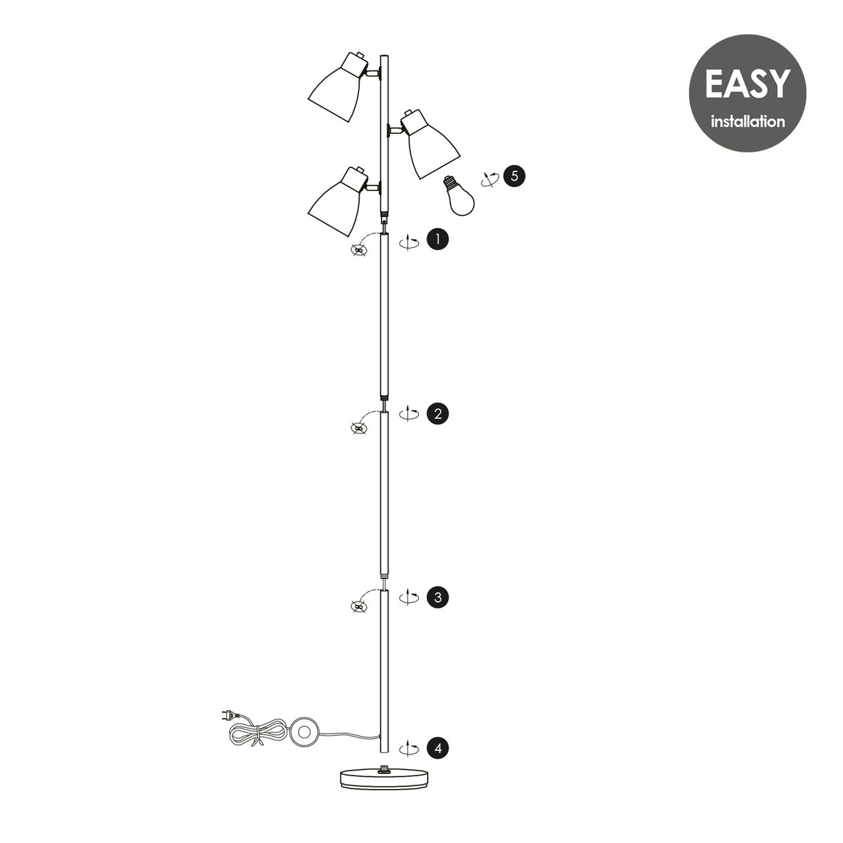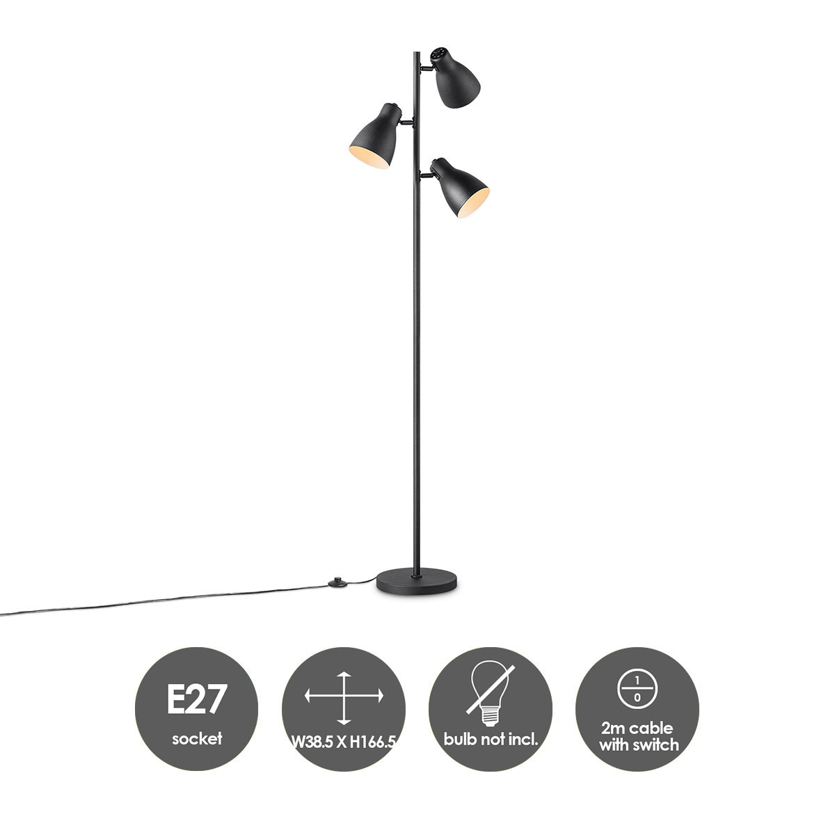 - 3 verstelbare lichtpunten met E27 fittingen (excl. lichtbronnen)