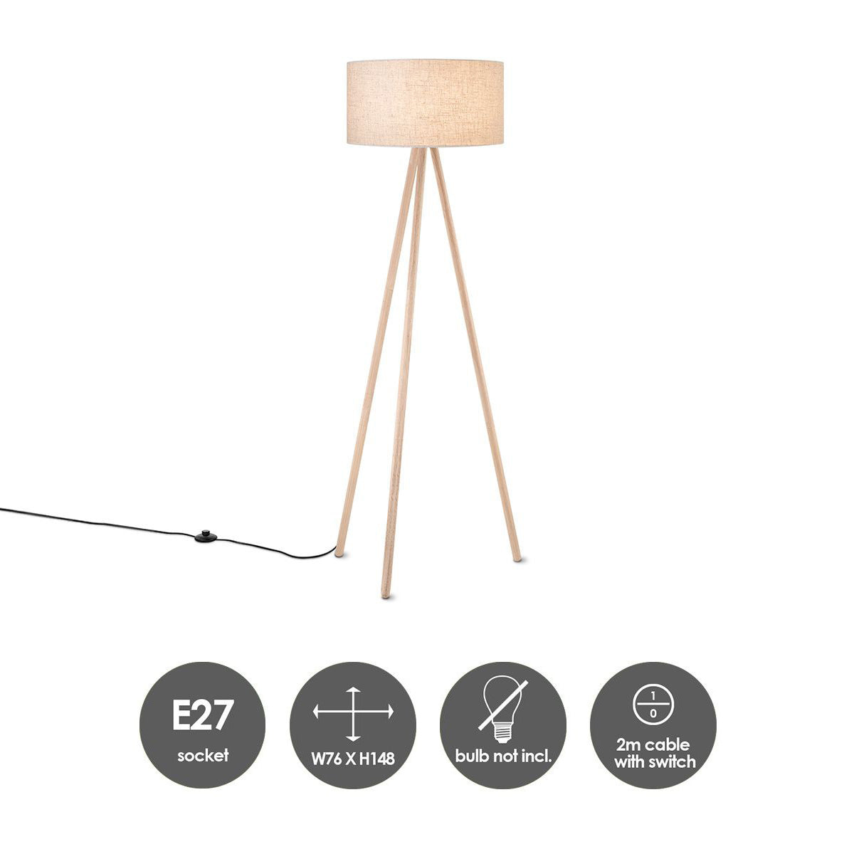 Home sweet home Milton Legs wood Vloerlamp - Kap linnen