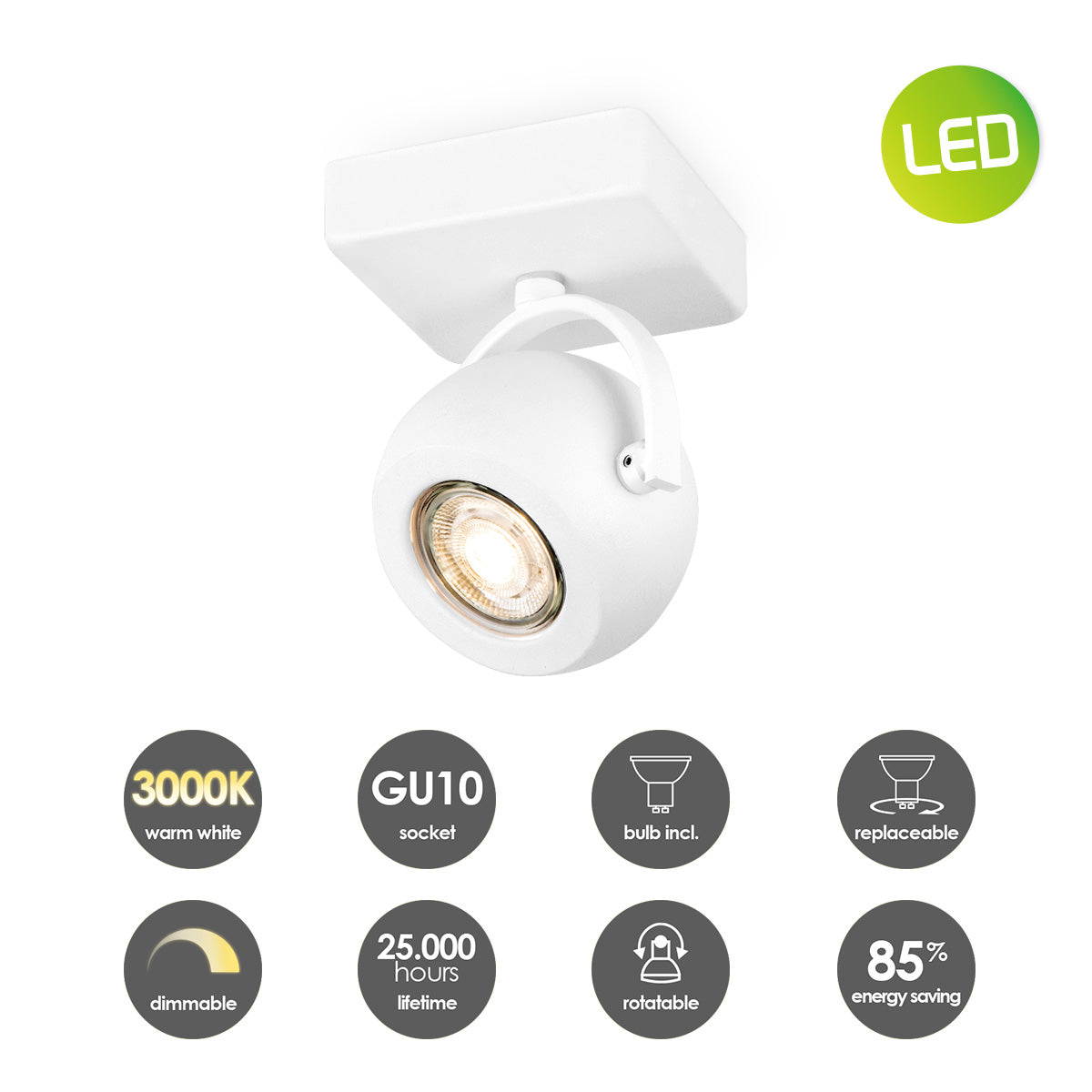- De wandspot wordt geleverd inclusief dimbare GU10 LED lichtbron - 5W, 390lm, 3000K - geeft warm wit licht.