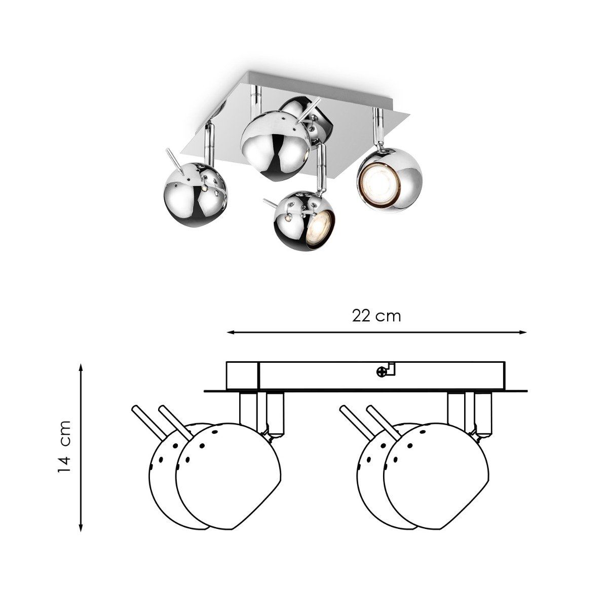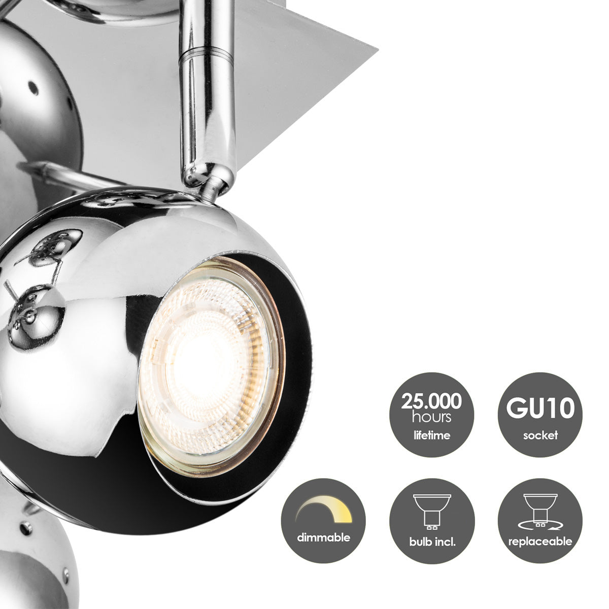 Home Sweet Home Opbouwspot Bollo 4 - incl. dimbare LED lamp - chroom
