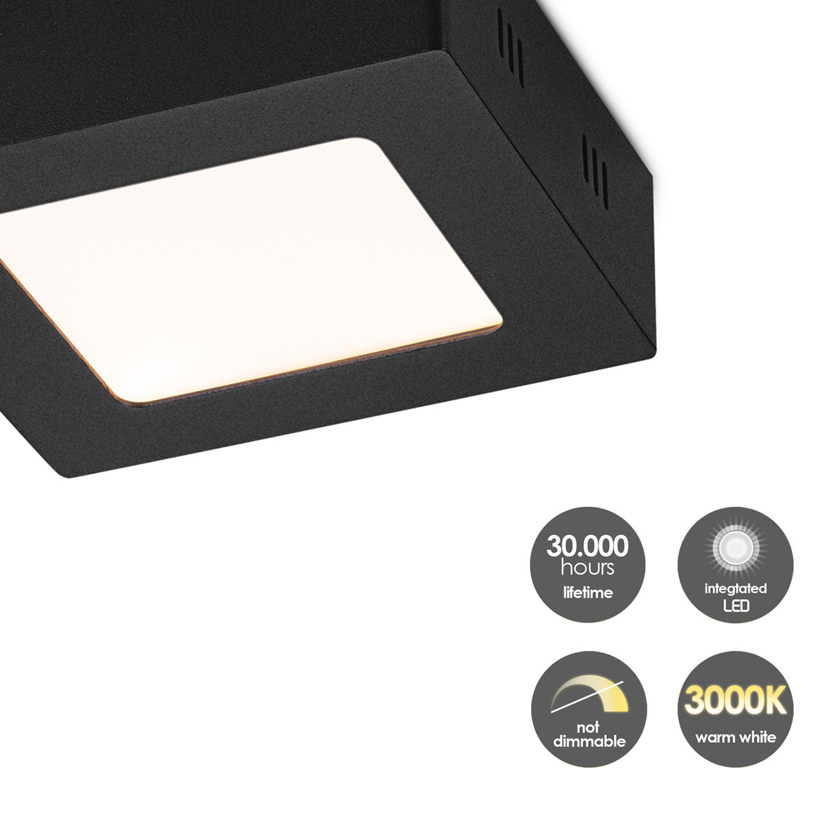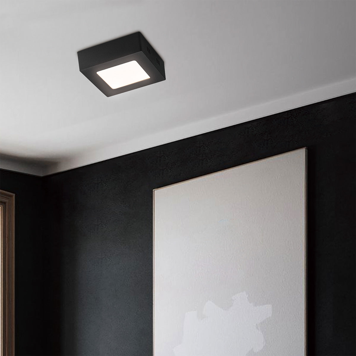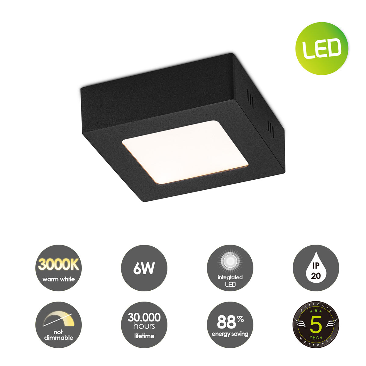 Met deze zwarte vierkante plafondlamp Ska heb je altijd voldoende licht in de ruimte en creëer je tevens een warme sfeer. Ska heeft een vierkante vorm (12 cm x 12 cm) en is 3,6 cm hoog. De behuizing is van mat zwart metaal.