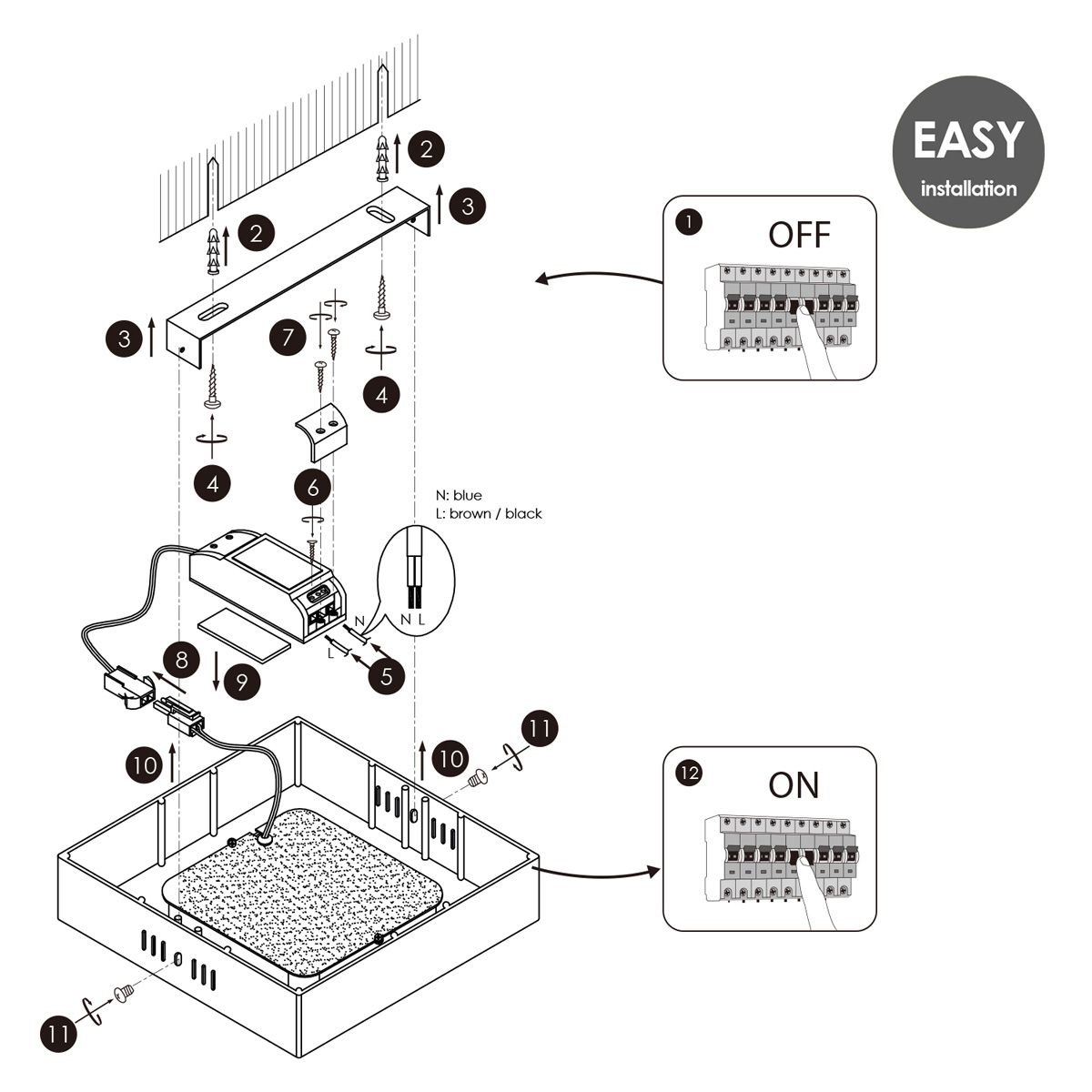 - De Ska LED Plafondlamp heeft de volgende afmetingen: 12 cm breedte x 12 cm diepte x 3,6 cm hoogte - compact en stijlvol design