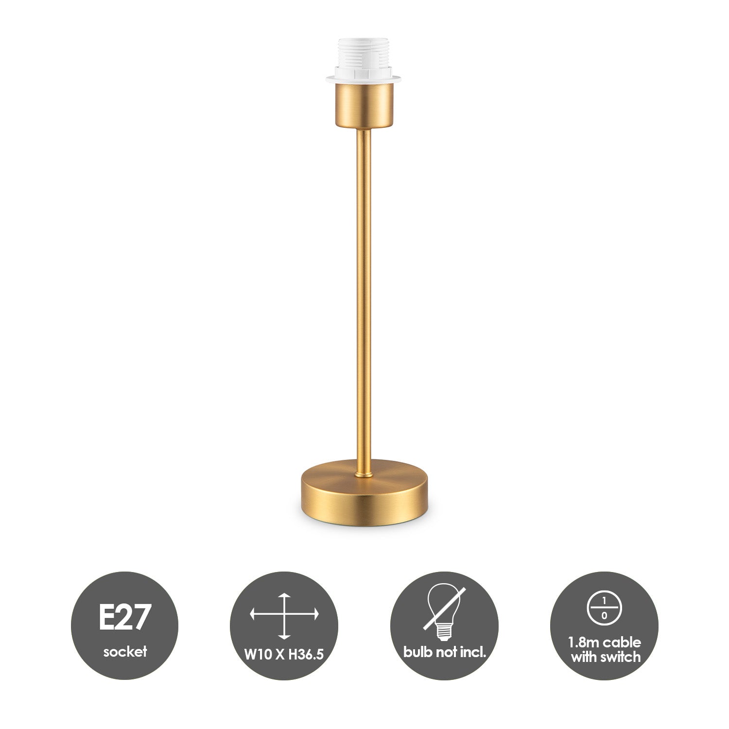 - Single tafellamp zonder kap, Afmetingen: 10 cm breed x 10 cm diep x 36.5cm hoog, ideaal voor lampenkappen met max. 35cm lampenkap